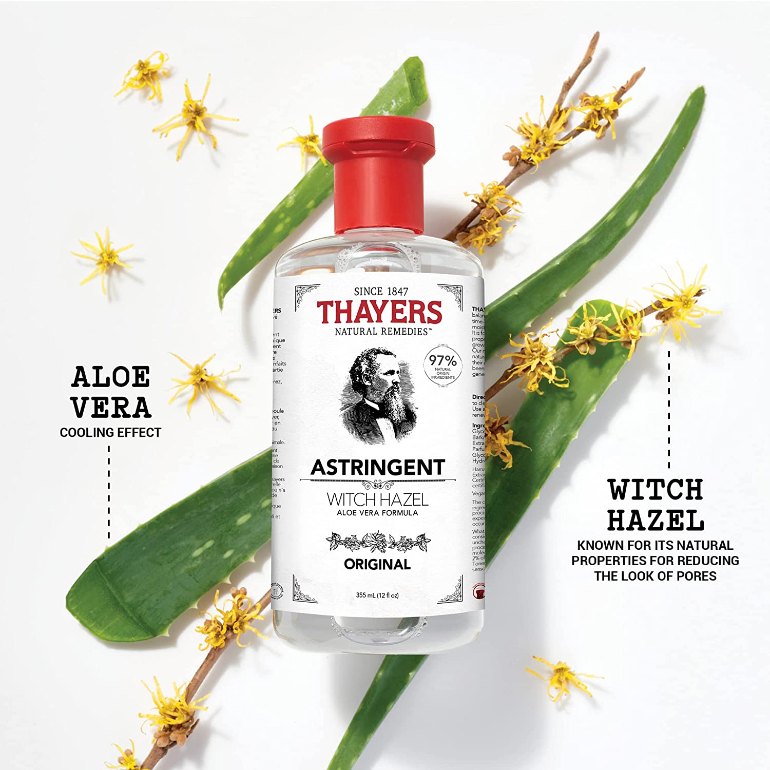 The Shrub of Life. Thayers Original Witch Hazel Astringent with Aloe Vera is a soothing, natural treatment that cleanses, heals and preserves skin, made of extract from the Witch Hazel shrub (Hamamelis Virginiana) and hydrating Aloe Vera. Thayers creates the only Witch Hazel products made of non-distilled extract from the Witch Hazel shrub, maintaining the highest levels of therapeutic tannins, the mild antioxidants that help your skin look and feel its best. These natural elixirs have been a fixture in medicine cabinets for generations. Once you use them, you’ll know why.