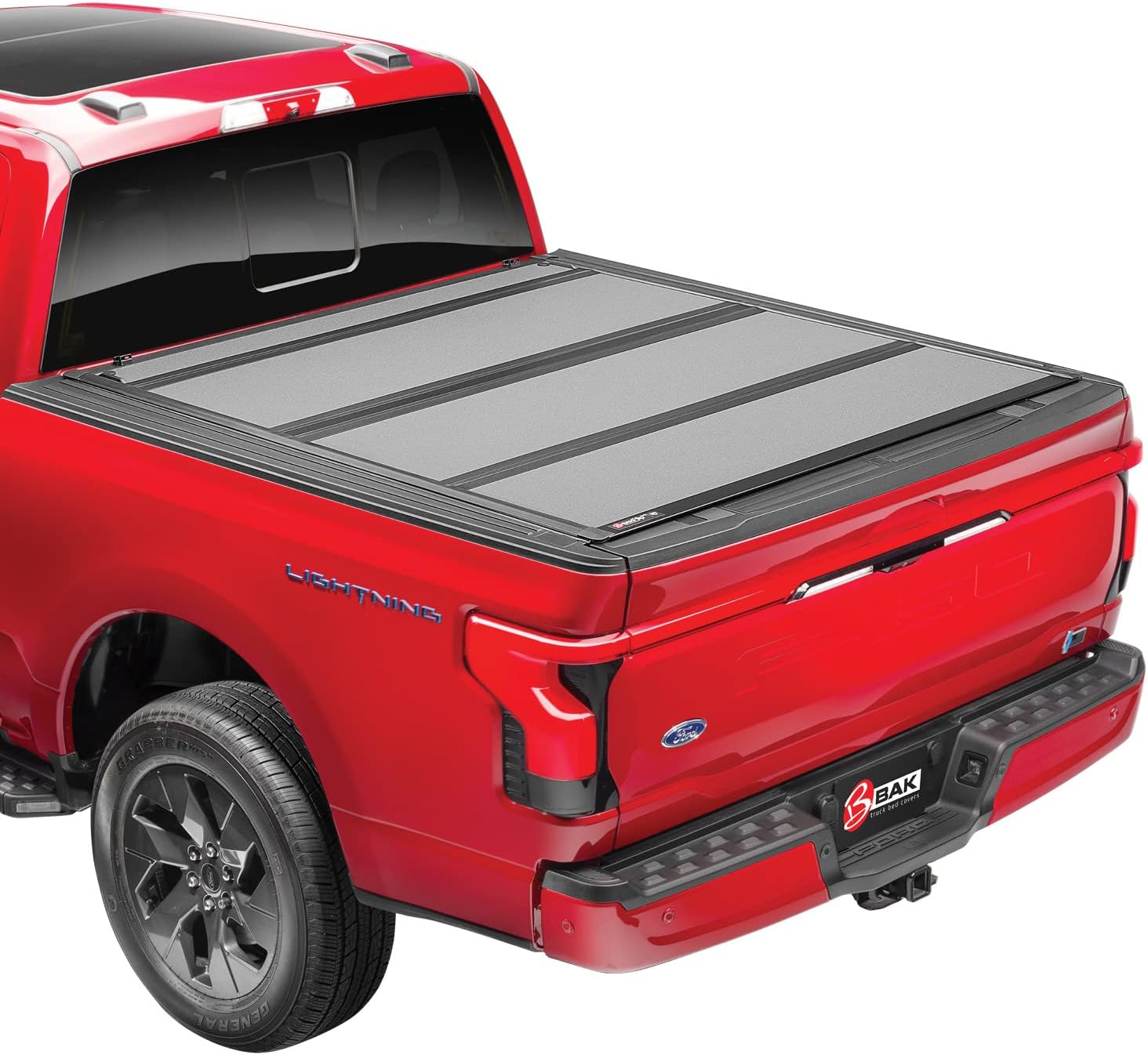 The BAKFlip MX4 was the first matte-finished, hard folding cover to market, becoming America’s #1 Selling Hard Folding Cover in just a few years. Simply put, the MX4 just looks better than other covers. Its sleek no-profile appearance allows you to maintain the appearance of your truck, while enabling you to securely stow cargo in the bed. The MX4’s pioneering, textured matte-finish adds a premium look and feel while also protecting against UV damage, annoying finger print marks, and scratches. MX4 has everything you expect from a premium cover. The engineers at BAK Industries fine-tuned even the smallest elements of the cover, down to adding cab corner caps and rail-end cap, to extending a matte-finish throughout the cover’s side rails, clamps, and elevator bolts. The MX4’s integrated buckle system and automatic latching mechanism allows you to drive with the cover partially or fully opened without covering the 3rd brake light. For 100% bed access, simply unlock the cover from either side via its pull latches and fold the cover all the way up against the cab. From there, you can prop the cover in place by tightening two rods into the underside of the panel. For enhanced durability, the MX4 also features pre-molded, shock-absorbent bumpers on either side of the panel, protecting the folded panels from hitting the cover during turbulent driving. Rain or shine, the MX4 provides confident cargo storage that’s complete with dual drain tubes to divert water away from the truck bed, as well as full perimeter seals to help protect against water intrusion. Finally, the MX4 can hold up to 400lbs of evenly distributed weight and is backed by a 5-year, hassle-free warranty. BAKFlip MX4 is proudly made in the USA with globally sourced materials with a US-based support team. .