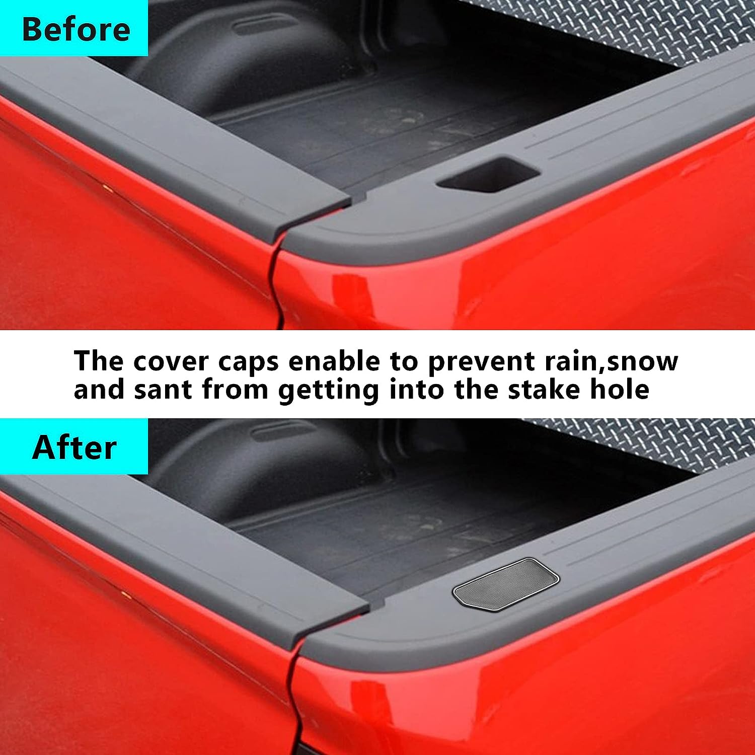 • Helpful to Truck Bed Rail: Cover caps are able to prevent the rain, sand and dust falling into the stake hole, which appears to be waterproof, anti-dirty and easy to clean, thus it can be also long-term used and environment-friendly.