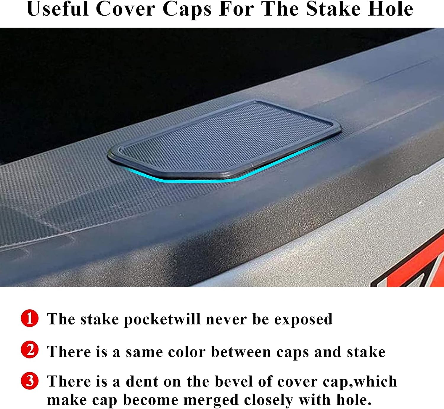 • Upgraded Material of Stake Hole Covers: High Quality ABS material, which resists from grinding, corrosion and high temperature, thereby it is pretty sturdy and durable. Also there is no color difference between the cover caps and bed rail. Besides the back surface of cover caps leads to the clear line grains.