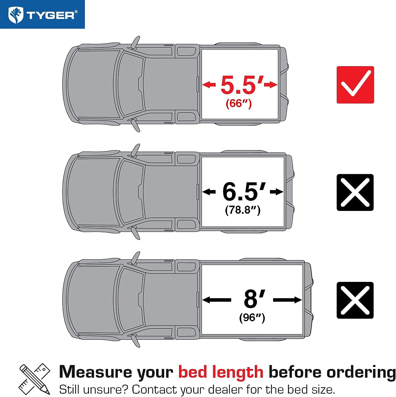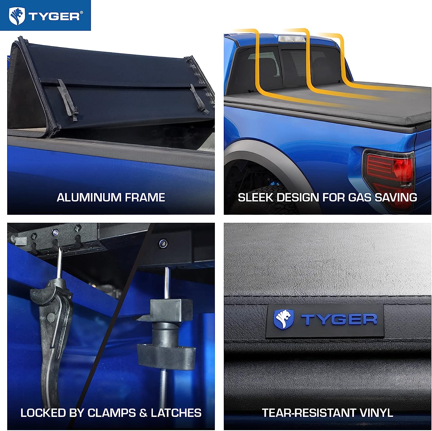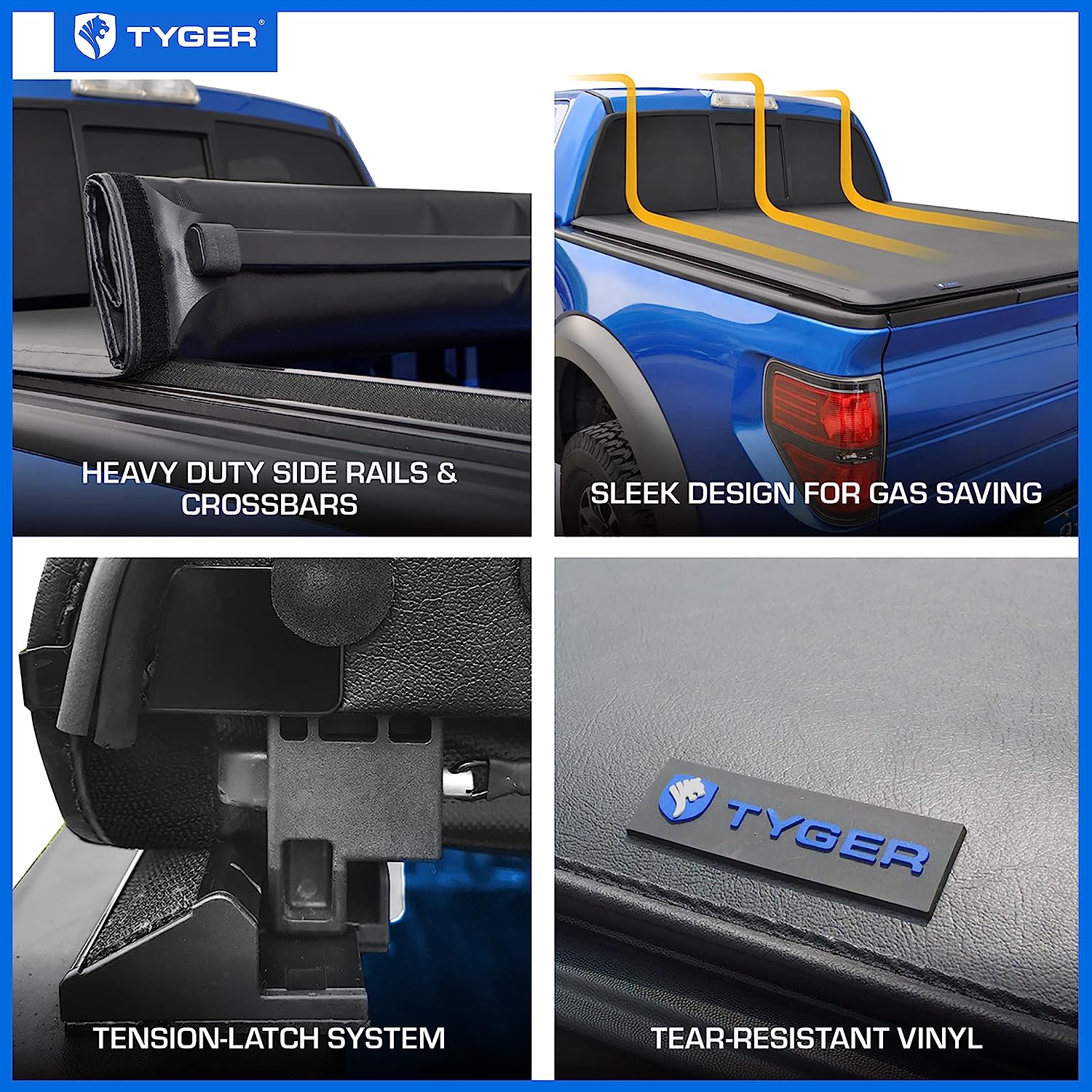 Tyger Auto T1 Soft Roll-up Tonneau Cover combines daily utility and clean style in one full package. Opening and closing of the bed cover is made easy by using a quick release mechanism that allows for the velcro secured marine grade 24 oz. vinyl tarp to be rolled-up and locked to the back of the cab that maximizes the opening and access of the bed. This soft rolling and lockable tonneau cover that mounts on top of the truck bed rails with the ease of no-drill installation offers up to 13% of gas savings. Tyger Auto focuses on developing premium aftermarket auto parts that meet or exceed OE quality standards backed by hassle-free warranty!