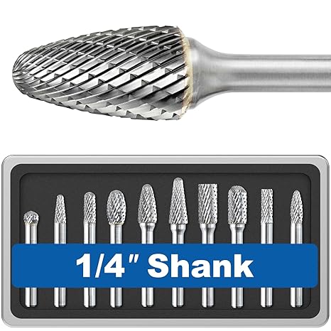 10 Pcs 1/4 Carbide Burr Set 1/4 Shank Die Grinder Bits Drill Bits Grinding Bits for Metal Rotary Tool Attachment Accessories Rasp Weld Wood Stone Deburring Compatible with Milwaukee Dewalt
