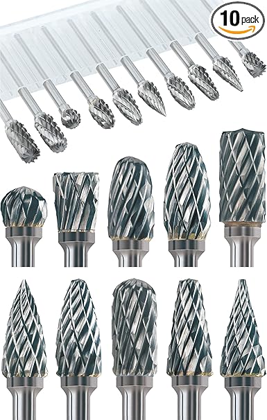 10Pcs 1/8" Shank Carbide Burr Bits Compatible with Dremel Bits Metal Grinding Bits Wood Stone Carving Cutting Engraving Grinder Kit Attachment Rotary Tool Accessories Set Harder than Diamond
