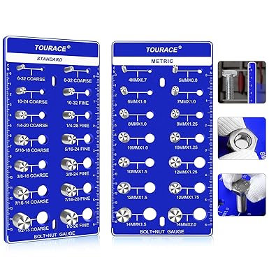 2Pcs Thread Checker, Nut and Bolt Thread Checker, Standard SAE and Metric, Bolt and Nut Thread Identifier Gauge Board, Wheel Bolt Pattern Torque Multiplier Chart Screw Size Gauge Finder Thread Chaser
