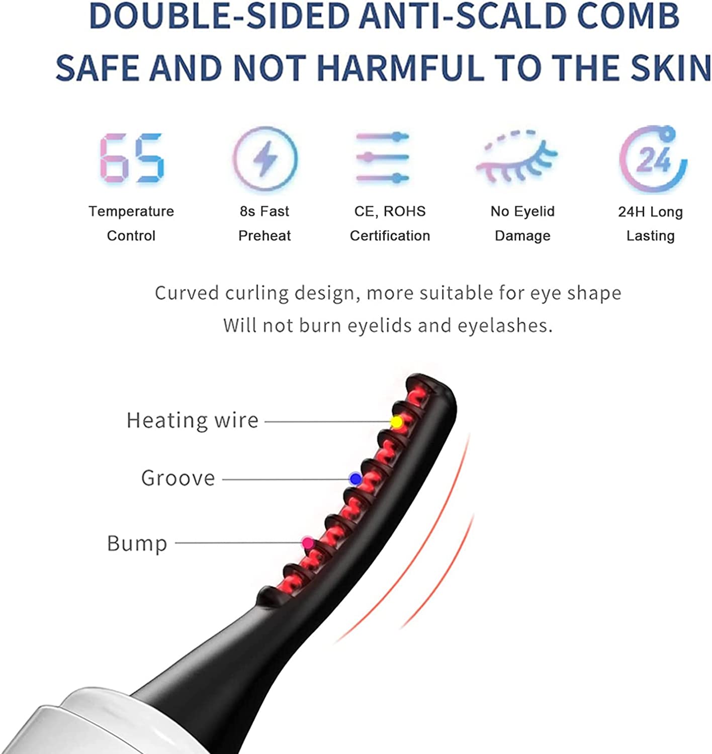 • 【Safe and Reliable】:This heated lash curler is CE, ROHS certified.5 minutes no operation automatic shutdown,the use of vacuum coating plating process, double-sided anti-burn curved edge design of the heated eyelash curlers,more suitable for eye shape.Will not burn eyelids and eyelashes.