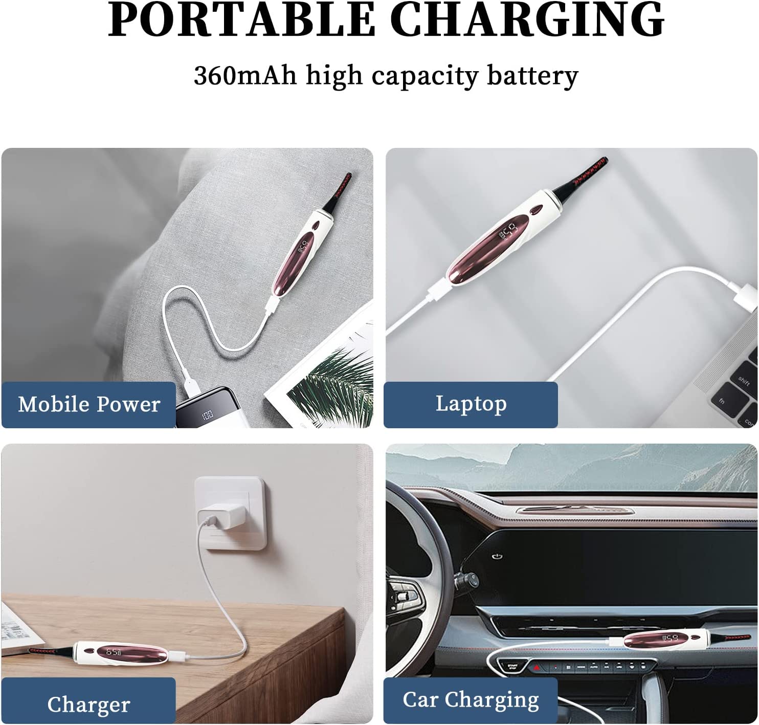 • 【Portable Electric Eyelash Curler】:Type-C charging by car USB,laptop, mobile power and many other different charging methods,360mAh high-capacity battery gets rid of the trouble of repeated charging.