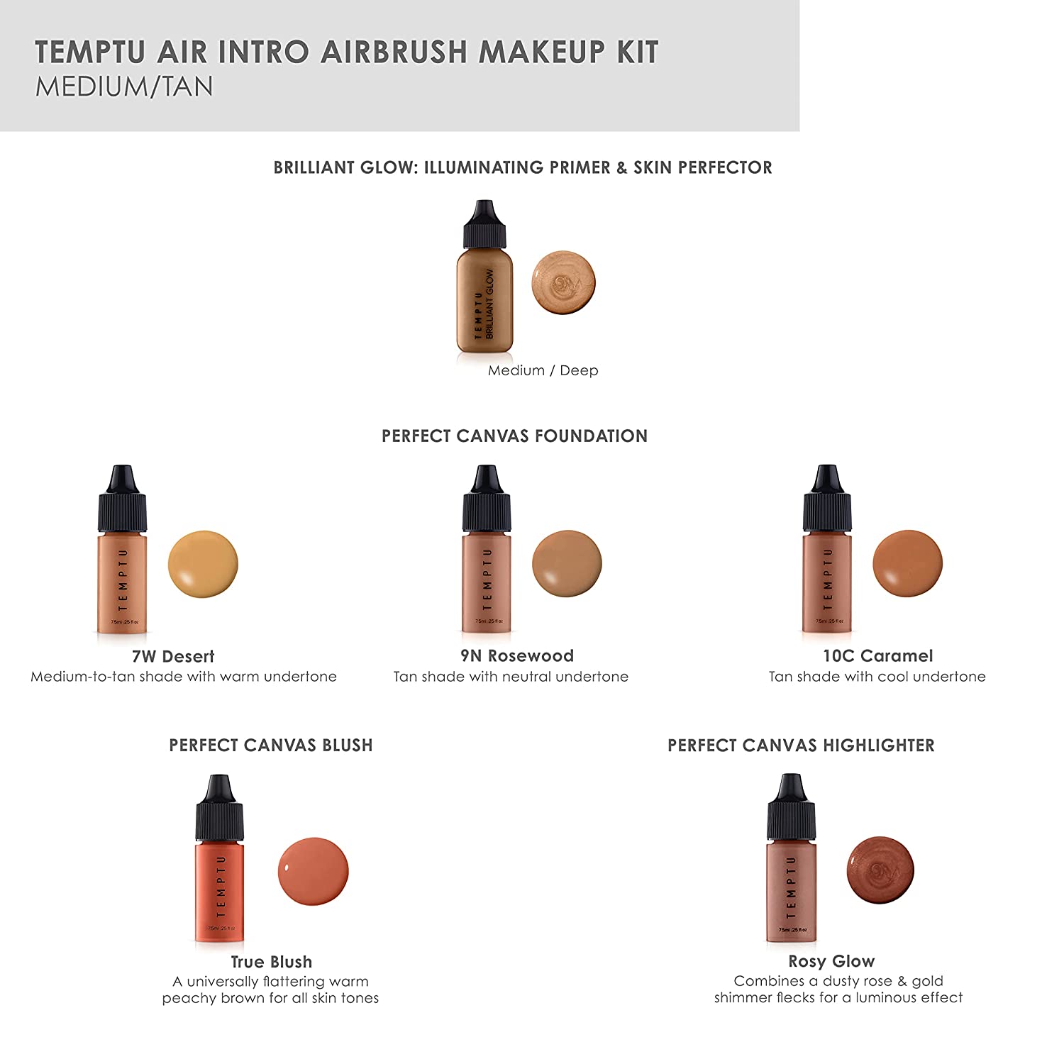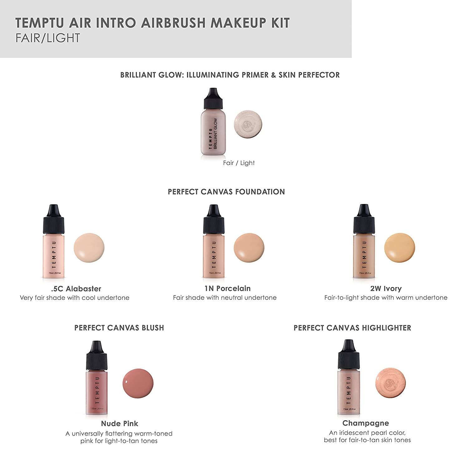 TEMPTU Air Intro Airbrush Makeup Kit: 9-Piece Set Includes Cordless Device, Refillable Makeup Cartridge, 3 Perfect Canvas Semi-Matte Foundations, Primer, Blush, Highlighter & Cleaner