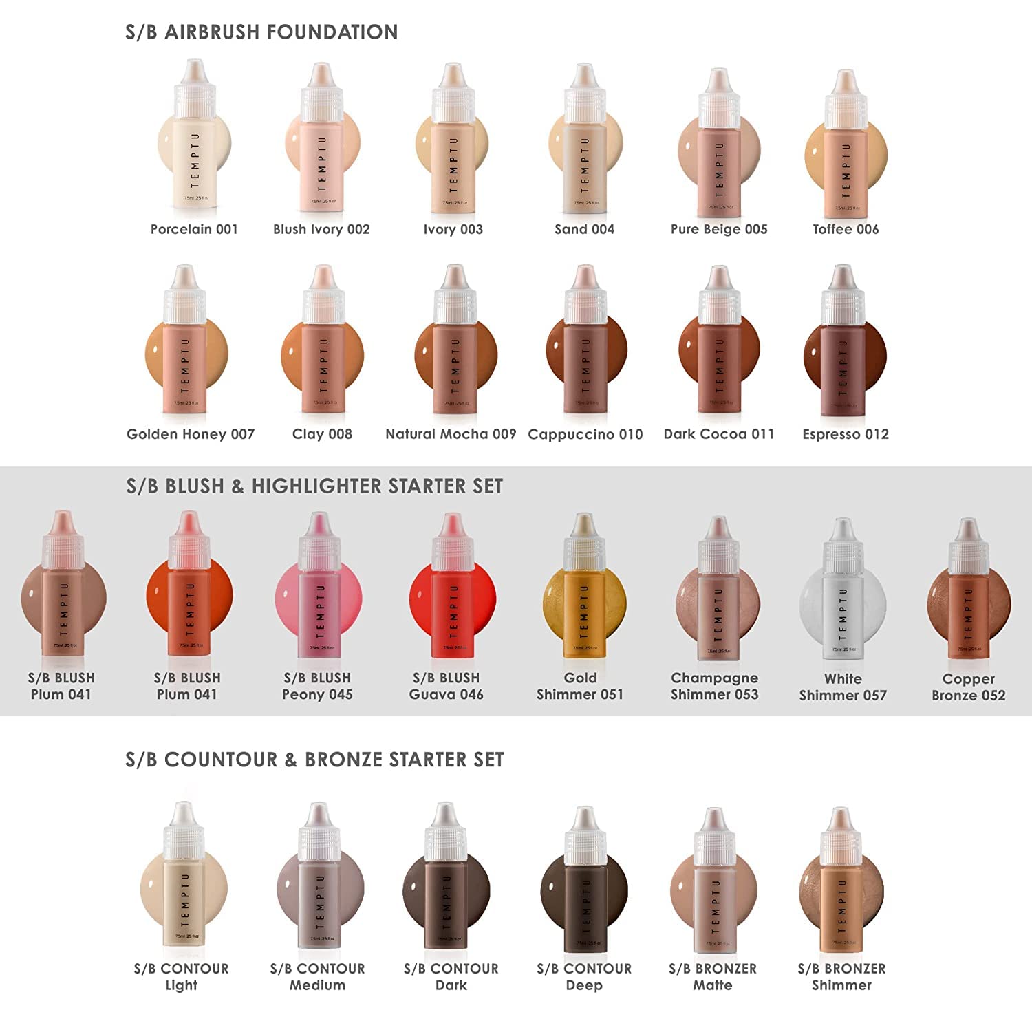 TEMPTU Airbrush Makeup System 2.0 Kit: Airbrush Makeup Set for Professionals and Makeup Artists: Includes S/B Silicone-Based Foundation Starter Set & Cleaning Kit, Lightweight, Travel-Friendly