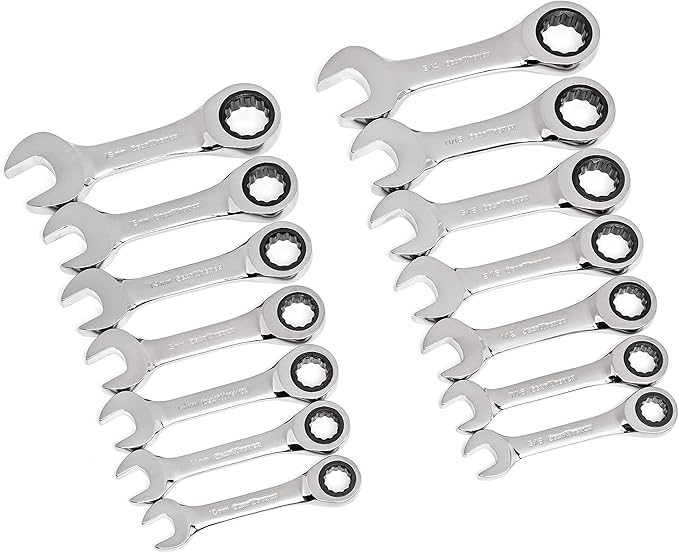 GEARWRENCH 14 Pc. 12 Point Stubby Ratcheting SAE/Metric Combination Wrench Set - 85206