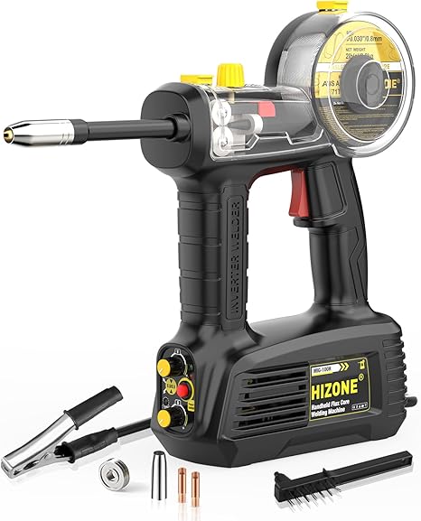Hand Held MIG Welder Machine 110V, HIZONE 100A Flux Core Portable Welding Machine, Handheld Gasless Inverter Wire Feed Welding Equipment