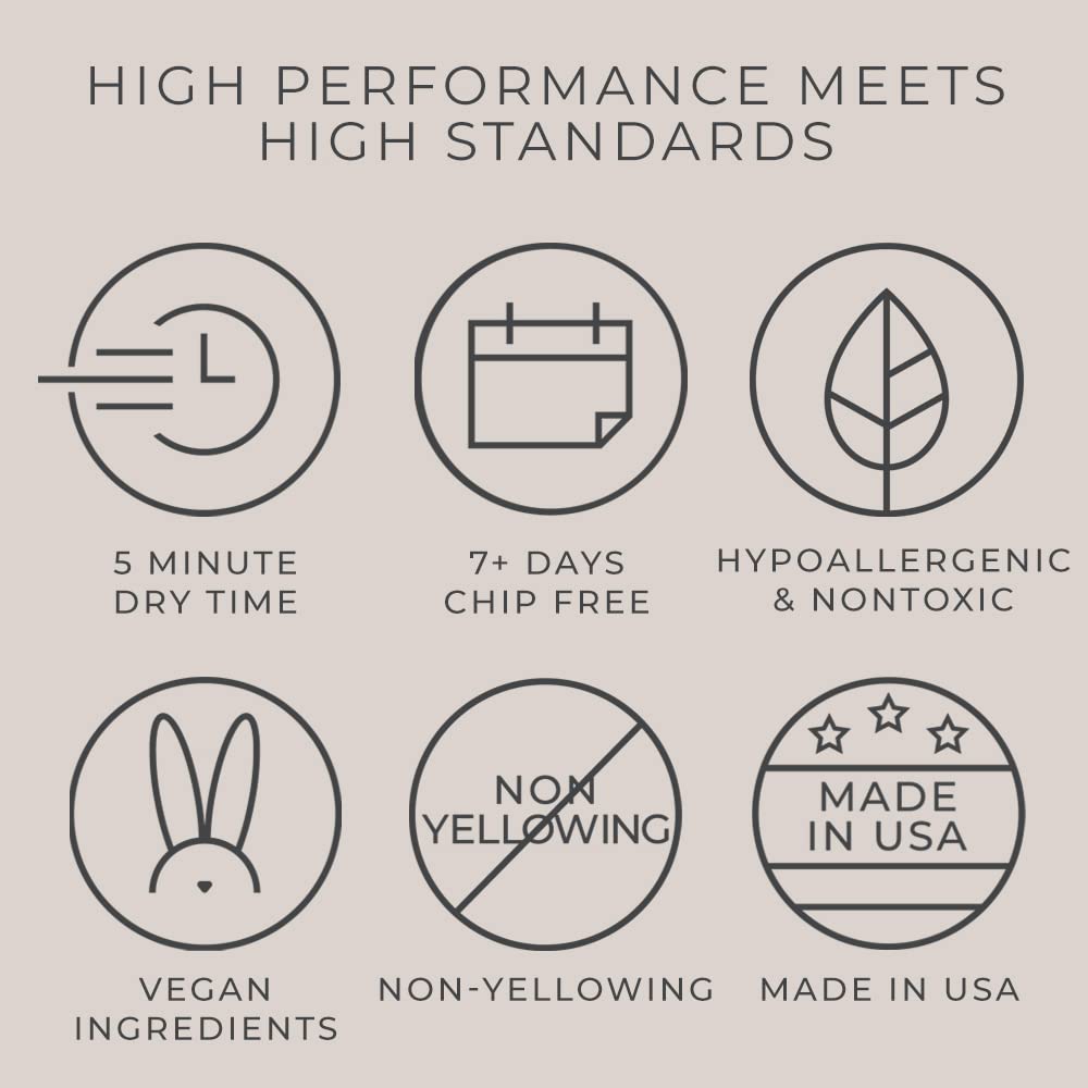 • NON-TOXIC: The top coat nail polish does not include any harmful ingredients that are commonly found in nail care products such as Formaldehyde, Camphor, and SLS.