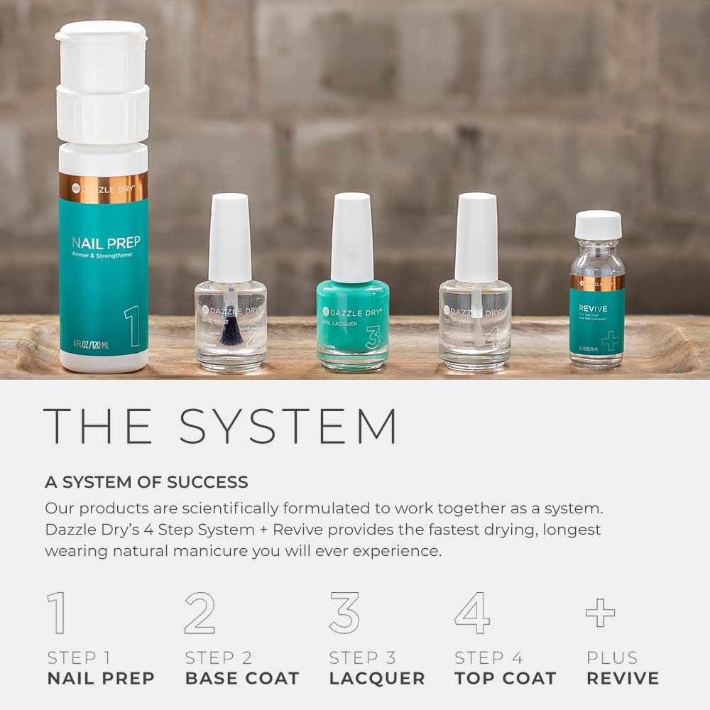• DAZZLE DRY NAIL SYSTEM: This clear top coat nail polish is the fourth step in Dazzle Dry's award-winning nail care system. Our innovative nail system is the fastest-drying, longest-lasting natural nail treatment on the market.