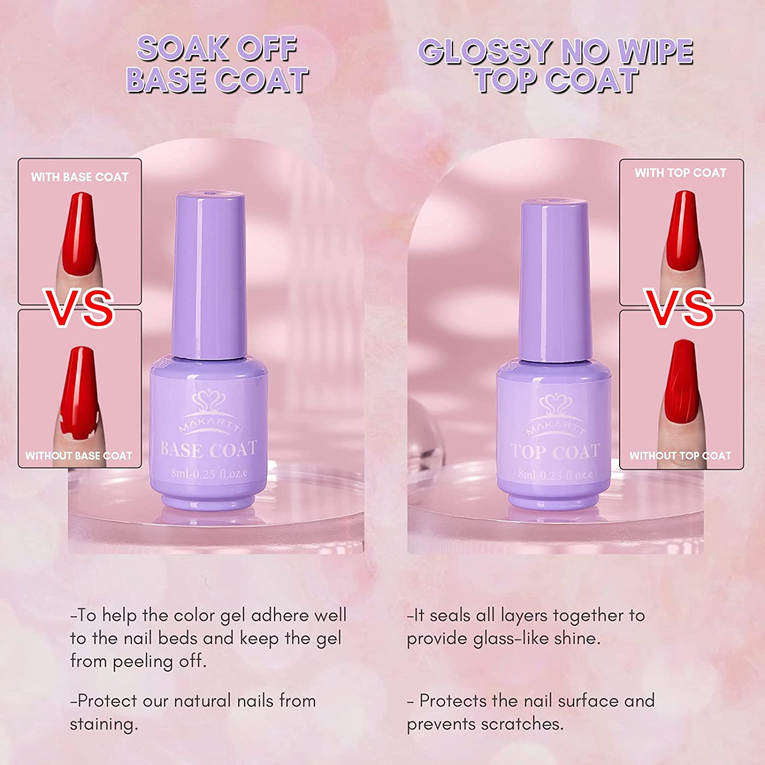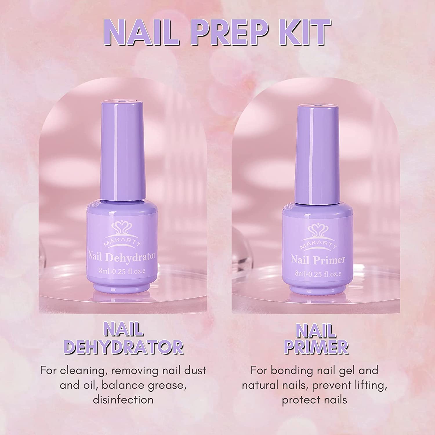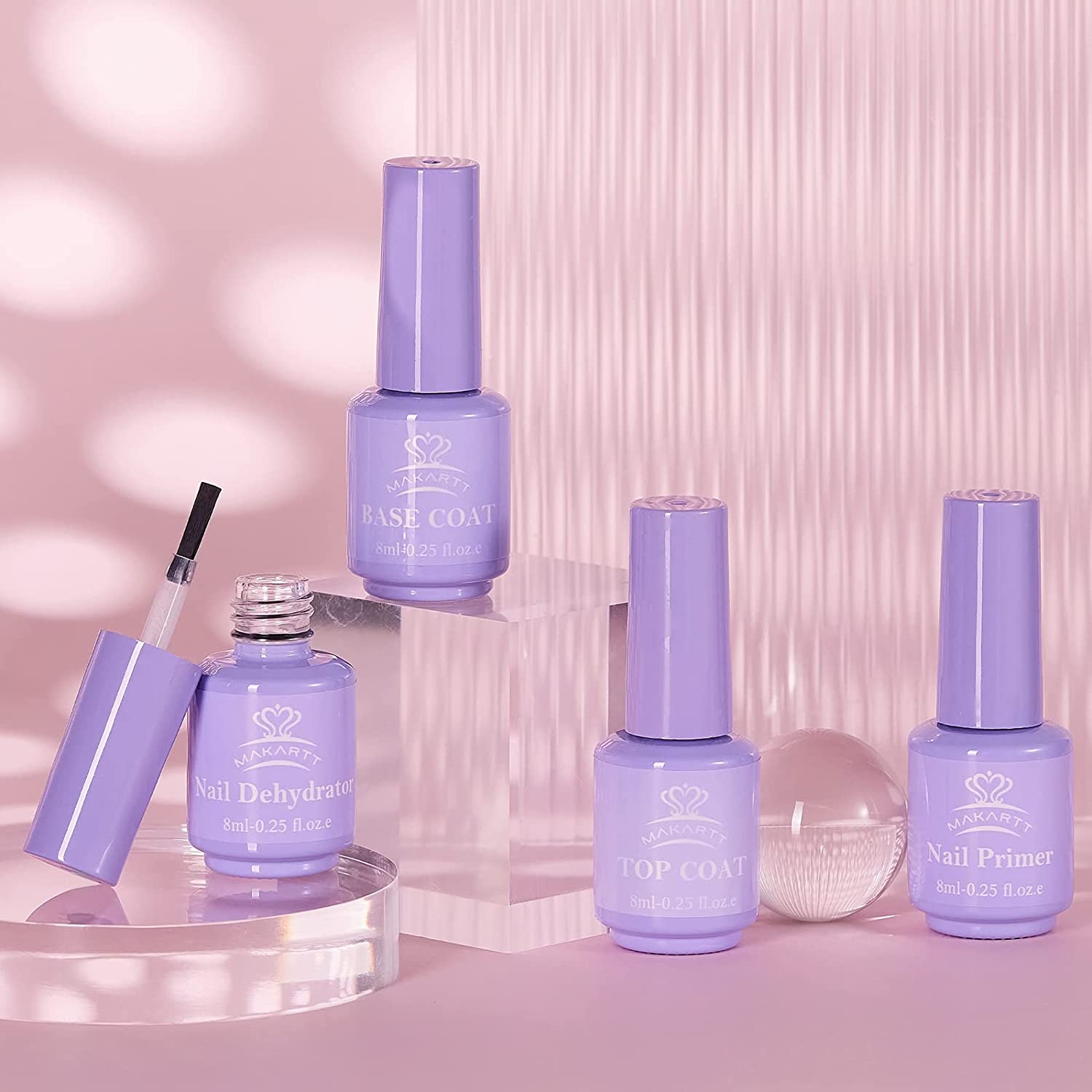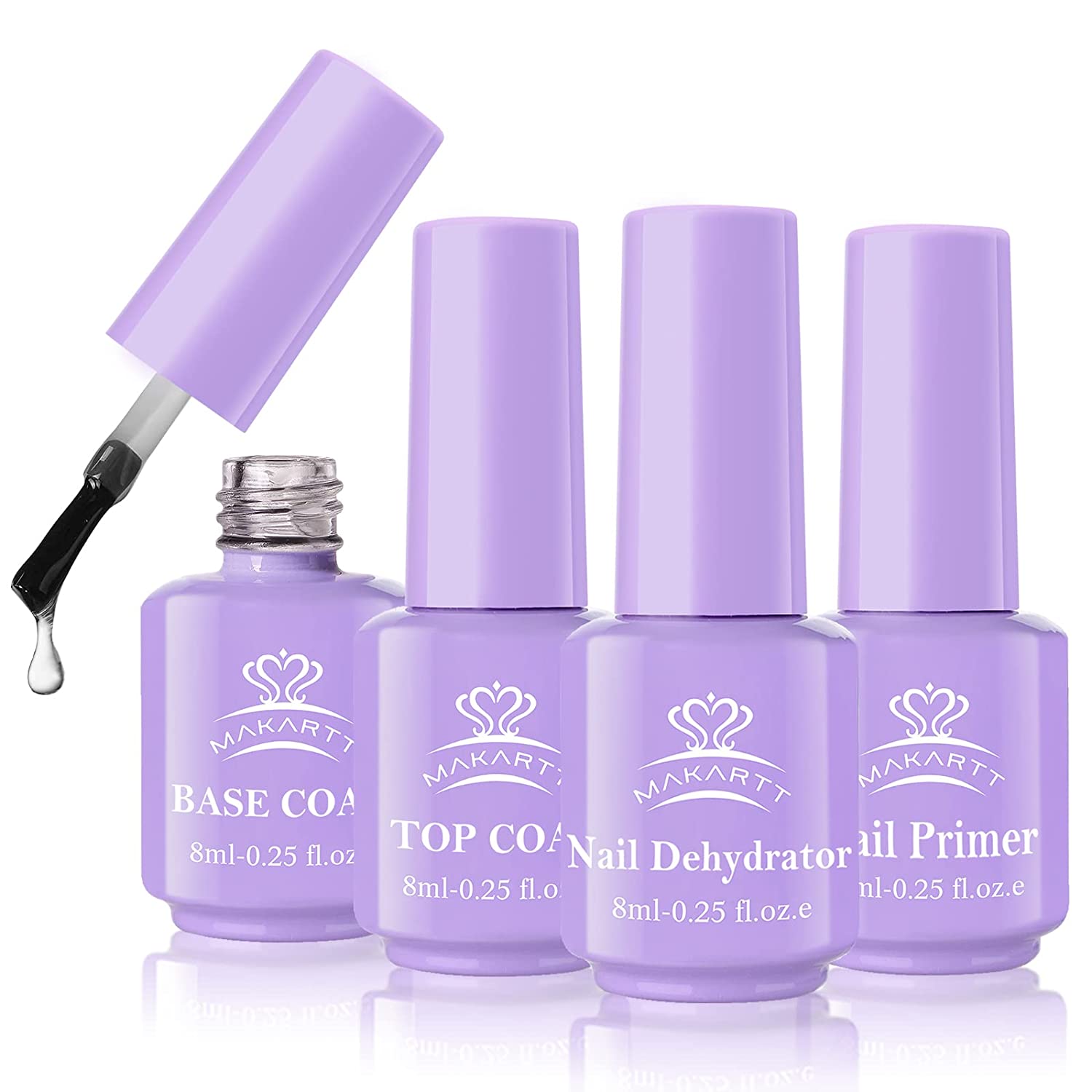 Makartt Gel Nail Polish Gel Top Coat & Base Coat Set with Nail Primer and Nail Prep Dehydrator(8ml)