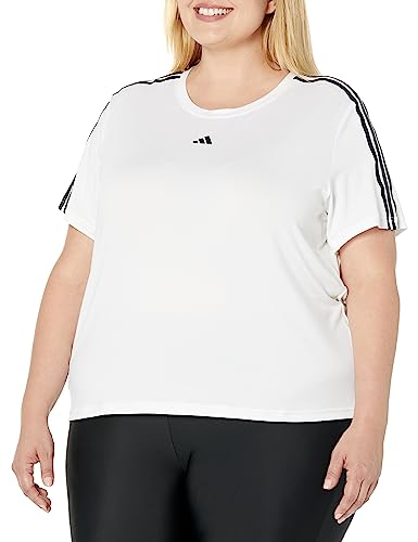 adidas Women's Plus Size Aeroready Train Essentials 3-Stripes T-Shirt, White/Black, 4X