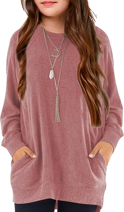 Girls Shirts for 6-13 Years Long Sleeve Crewneck Tops with Pockets