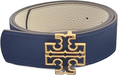 Tory Burch 141742 Britten Royal Navy Blue/New Ivory White With Gold Hardware Reversible 1.5 Inch Width Women's Belt