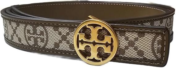 Tory Burch 84155 T Monogram Jacquard Khaki/Brown With Gold Hardware 1 Inch Width Women's Belt
