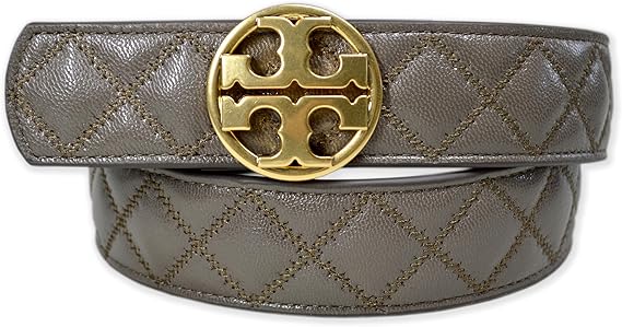 Tory Burch Women's 140930 Willa Diamond Quilted Leather With Gold-tone Hardware 1.5 Inch Width Belt Volcanic Stone Brown (Medium)