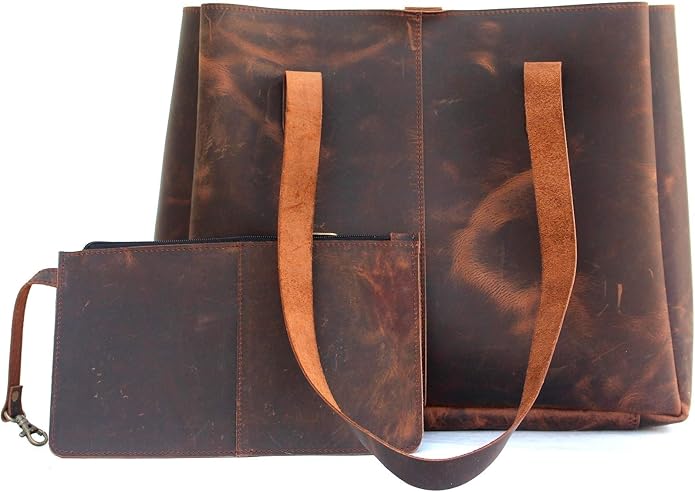 Genuine Soft Buffalo Leather Tote Bag Elegant Shopper Shoulder Bags by Lust Leather Rustic Brown