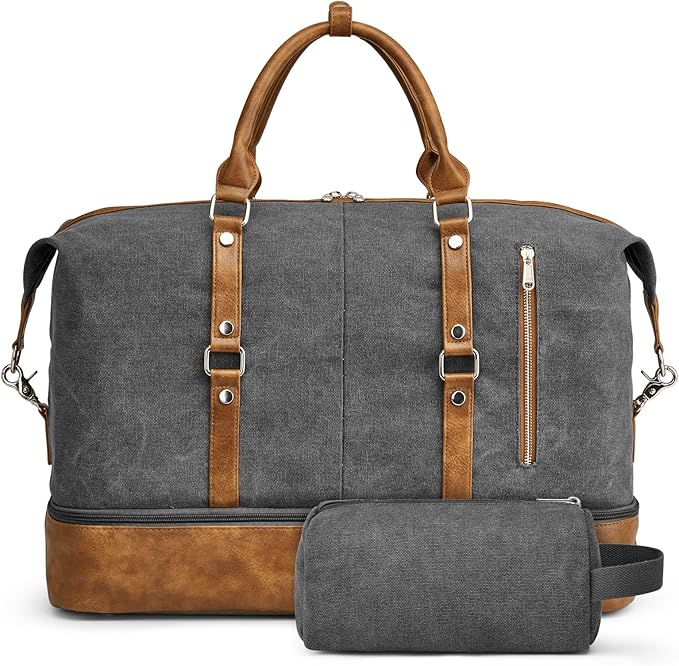 S-ZONE Weekender Bag for Men Canvas Duffle Large Weekend Overnight Travel Carry On Tote Bag with Shoe Compartment (Grey)