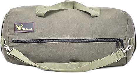 Waxed Canvas All Purpose Military Style Duffle Bag, Water-Resistant, Adjustable Strap, Fully Lined, Double Zipper Closure, heavy Duty, Olive Green