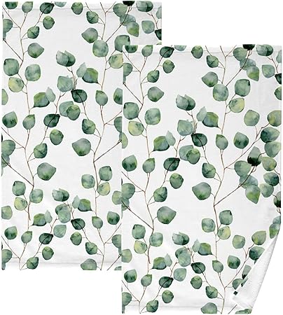 ALAZA Bathroom Hand Towels Green Hand Towels for Bathroom Set of 2 Sage Green Leaf Pattern 100 Percent Cotton Towel Soft Luxury Decorative Bath Towels Highly Absorbent Face Towel 16" X 28"