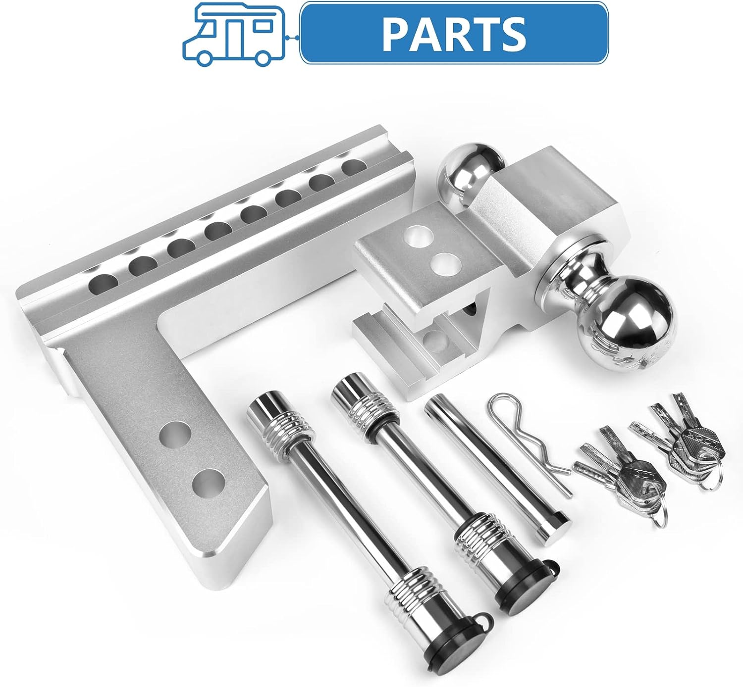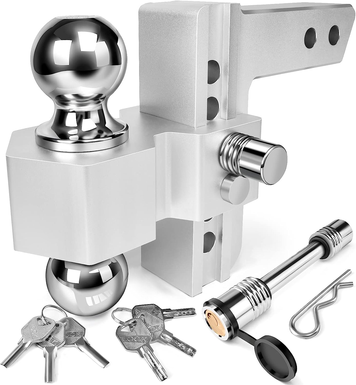 • 🛻 DUAL-BALLS DESIGN: The integrated ball head eliminates the need for ball mounts and won’t ever fall off and it also reduces vibrations, chucking noise, and rattling when towing. And comes with everything you need; Each adjustable trailer hitch includes a combination of two sets of locks and keys to secure the ball mount platform and the hitch. All of that topped off with the fact that they give you everything you need to keep thieves from stealing any of it !