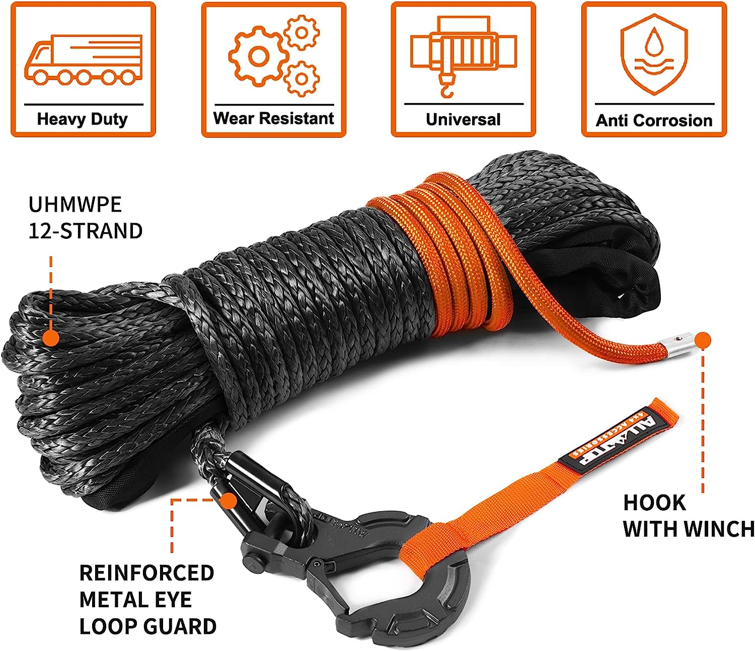 • 【Reliable Warranty】To Join ALL-TOP's 200,000+ Community Today, our Reliable Overland Products support all Pro Players over the world. We persistently improve our Overland Products & After-Sale Services to ensure your 100% Satisfaction & Experience. ALL-TOP Synthetic Winch Ropes are provided with 1-Year / 12-Month Hassle-Free Warranty and Lifetime Customer Support.