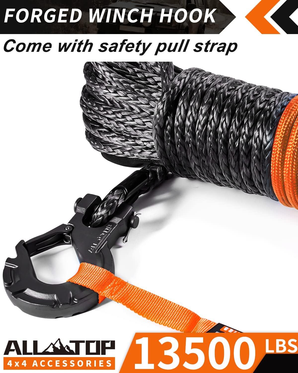 • 【Extreme Winch Hook】Package also includes our Extreme Series Winch hook which is made of Ultra-Strong Fully Forged Steel to provide 13500 Lbs Break Strength. With ALL-TOP's exclusive 12-Stage Coating process including E-coat and Powder Coats, these Hooks are Impact-Resist and have a much longer Wear Cycle against Wear & Abrasion.