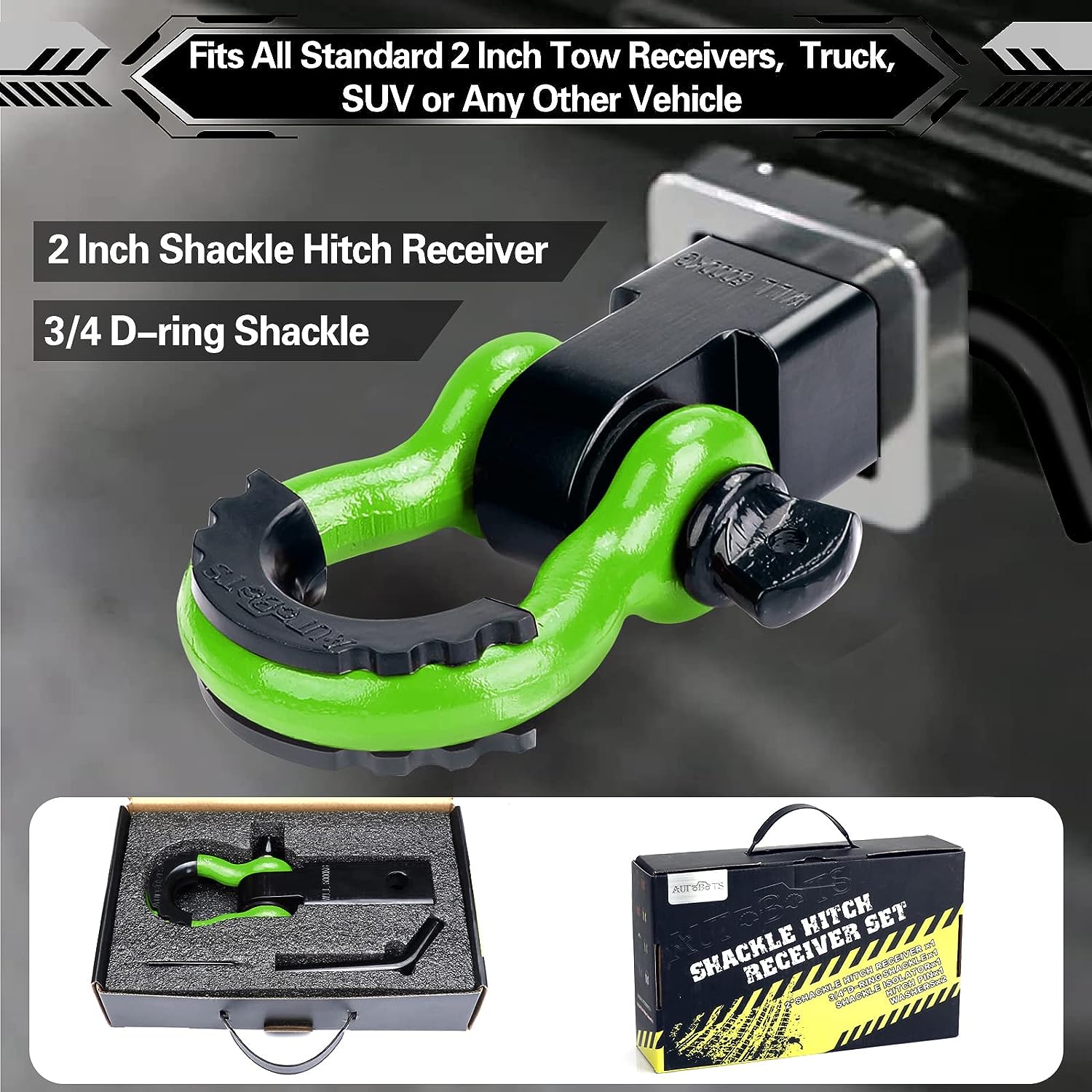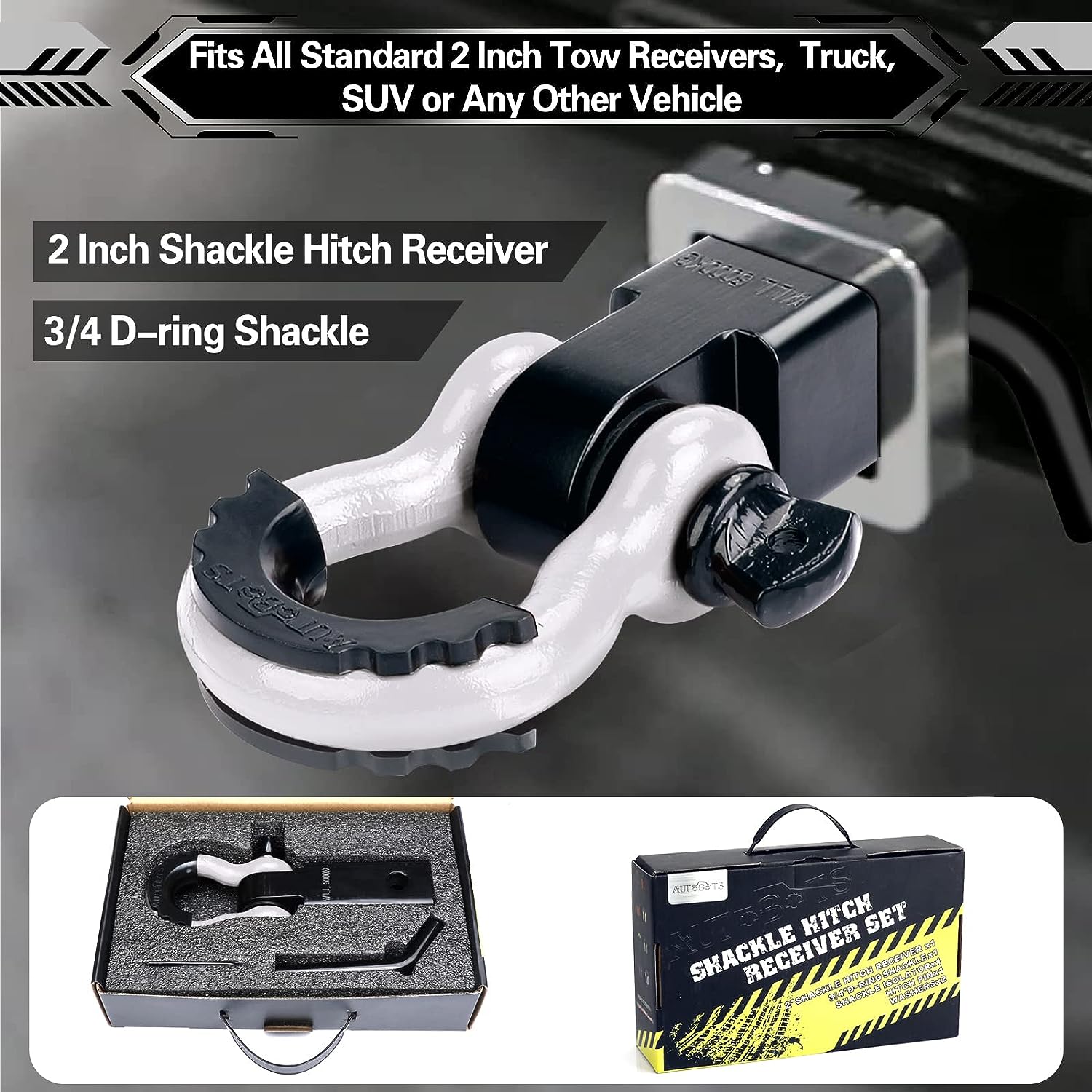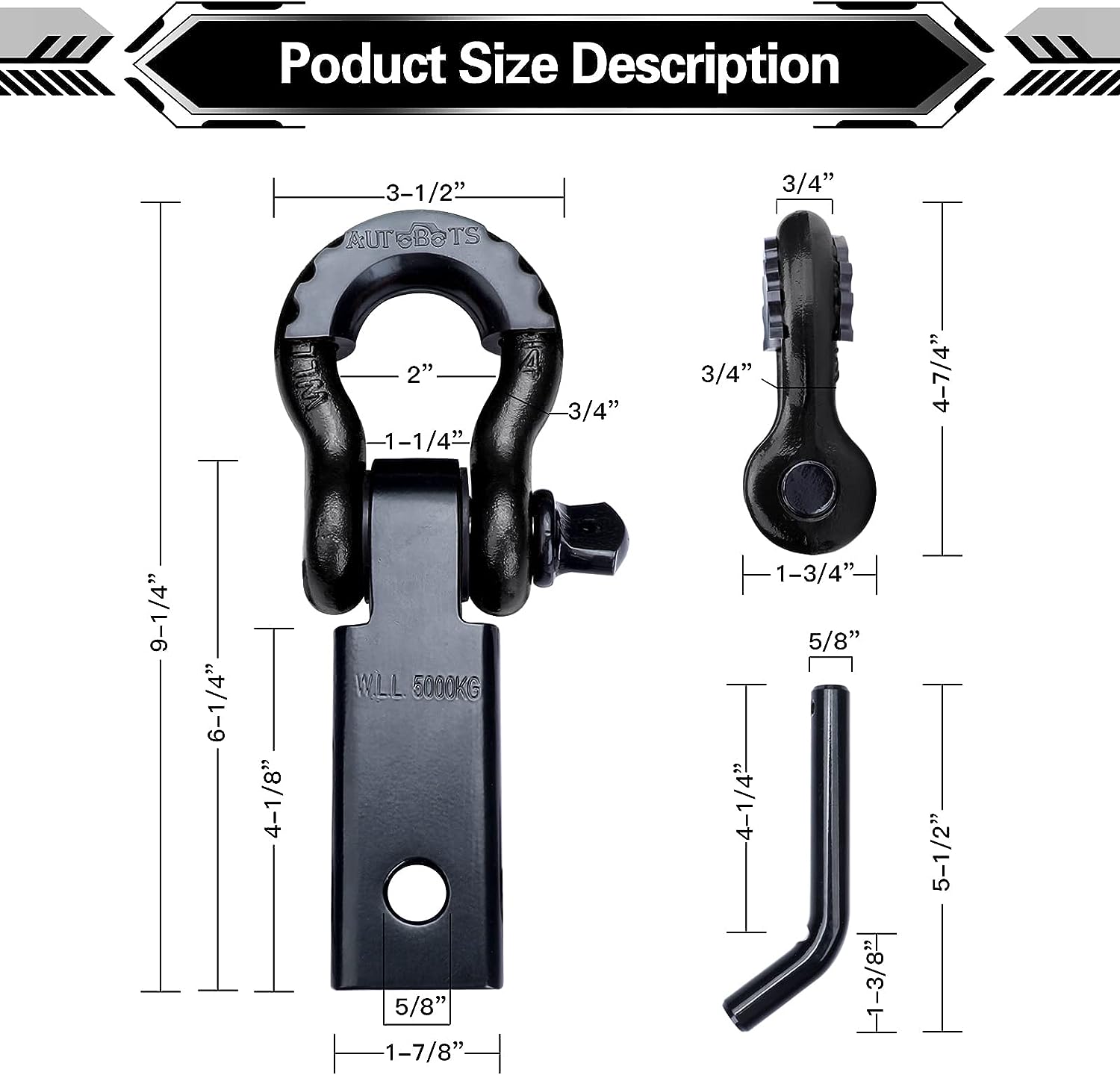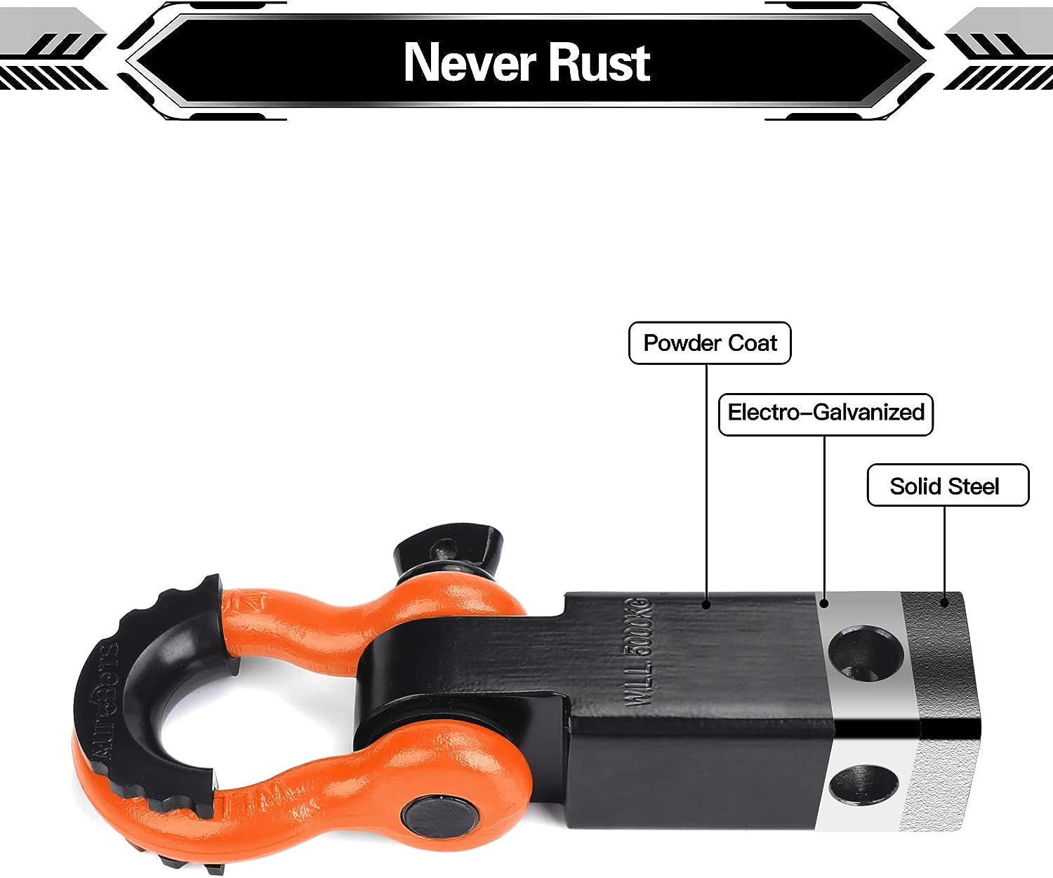 • Multiple uses: tow hitch shackle fits all standard 2" tow receivers, turning your truck, SUV or any other vehicle into a towing machine built to resist any kind of harsh conditions. The rugged powder-coated finish provides superior corrosion resistance
