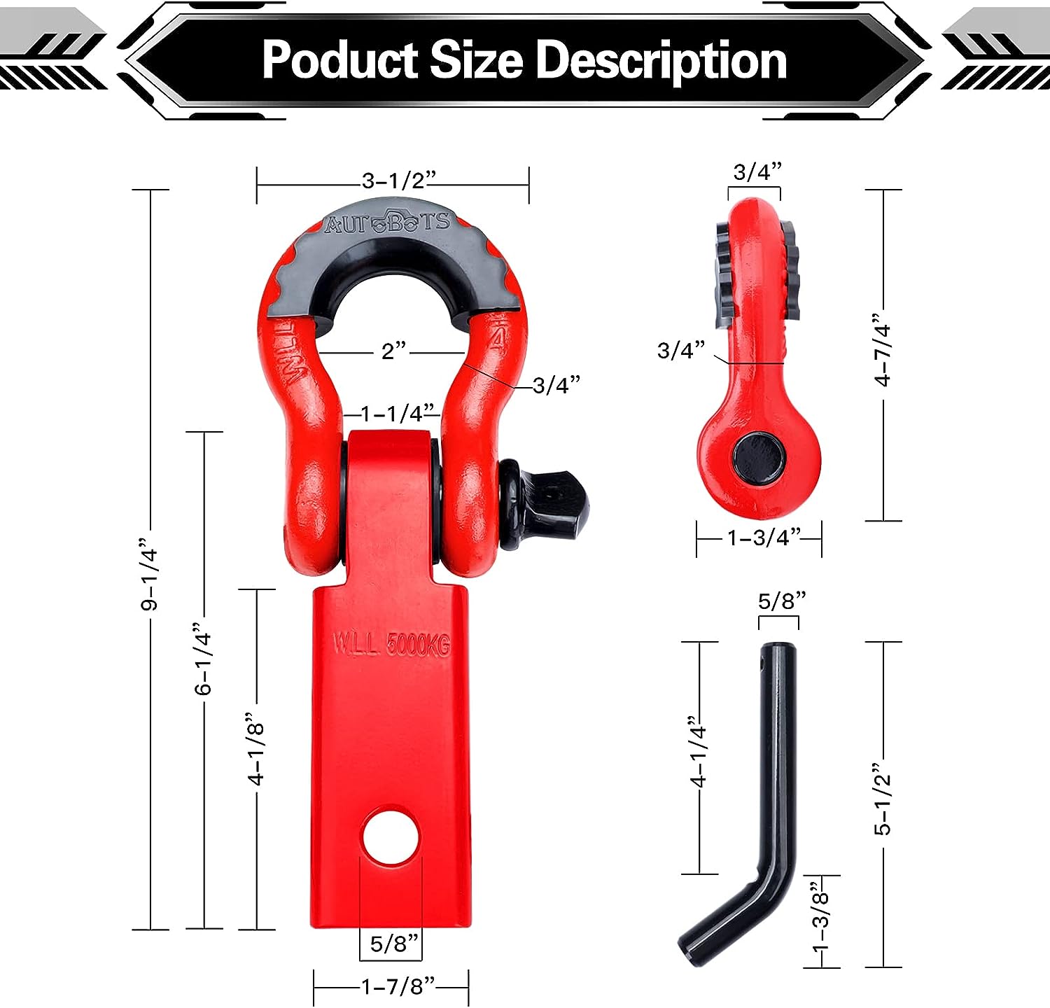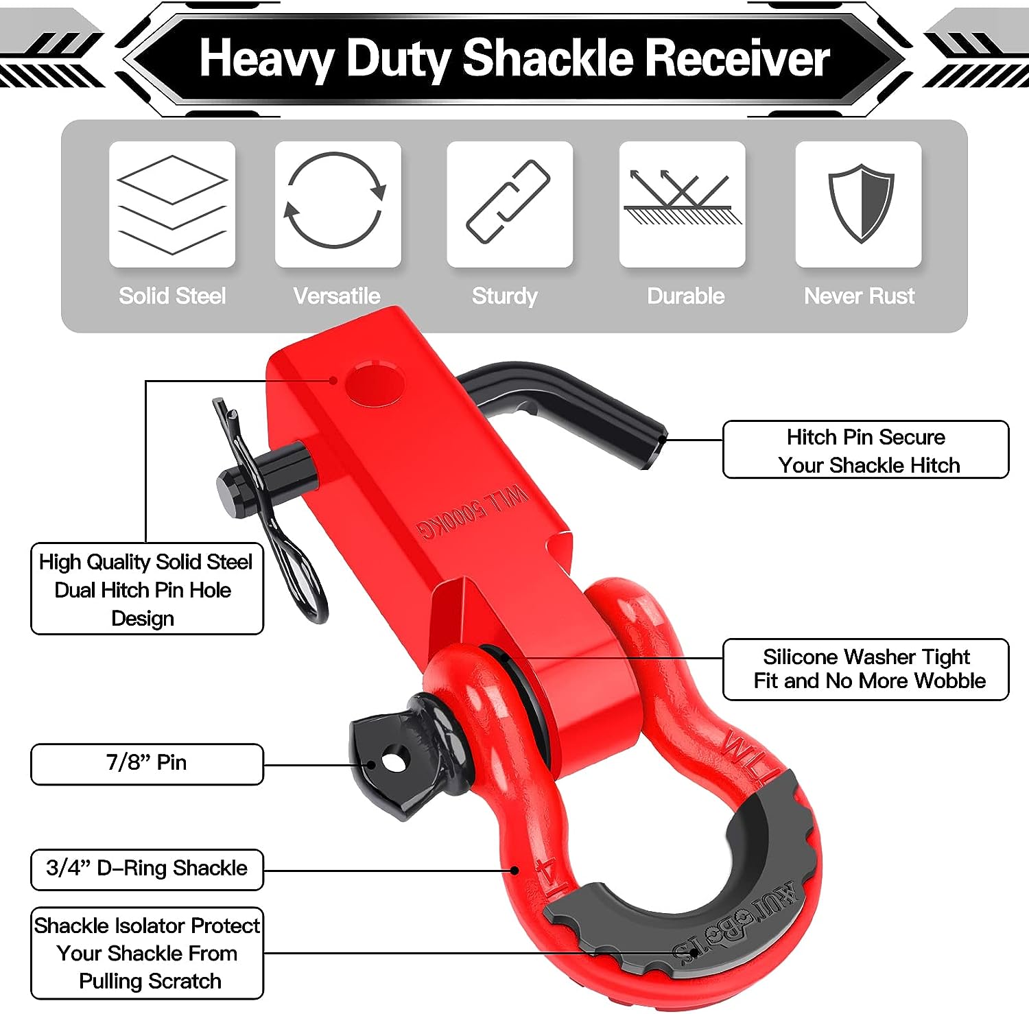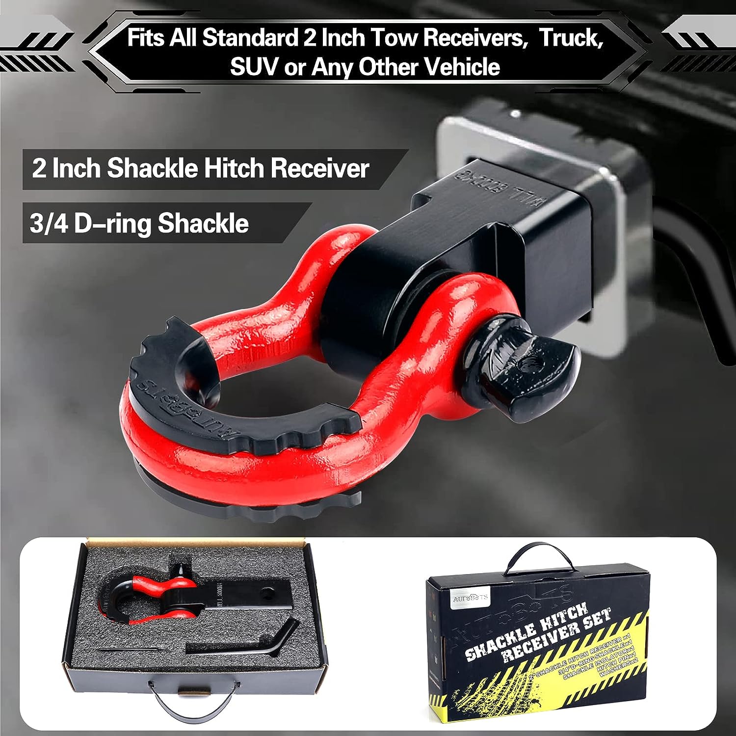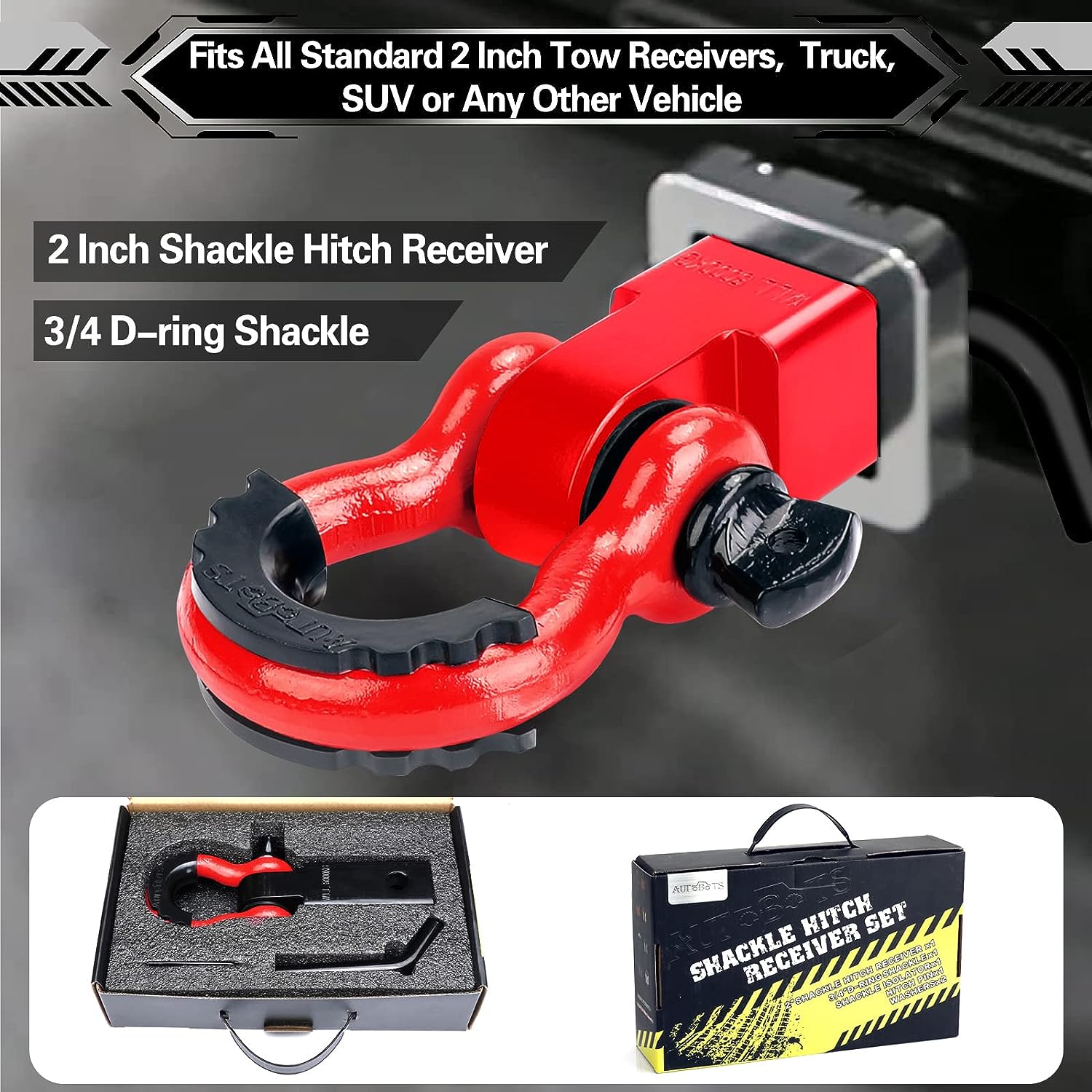 AUTOBOTS Shackle Hitch Receiver 2", 45,000 Lbs Break Strength Heavy Duty Receiver with 5/8" Screw Pin, 3/4" D Ring Shackles, Towing Accessories for Vehicle Recovery Off-Road, Red&Black