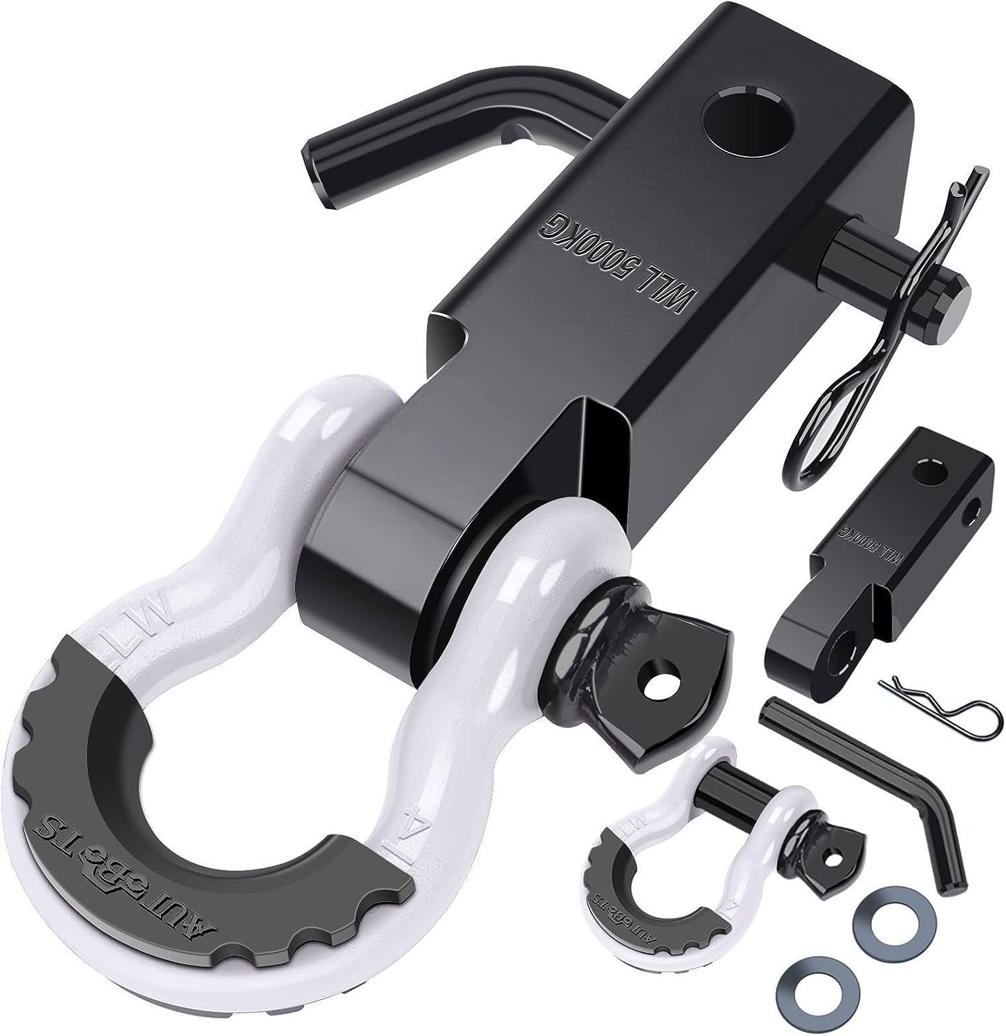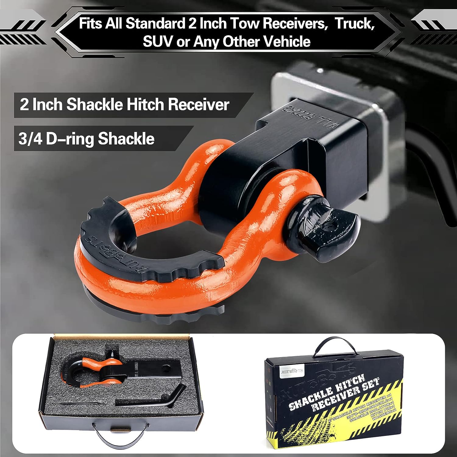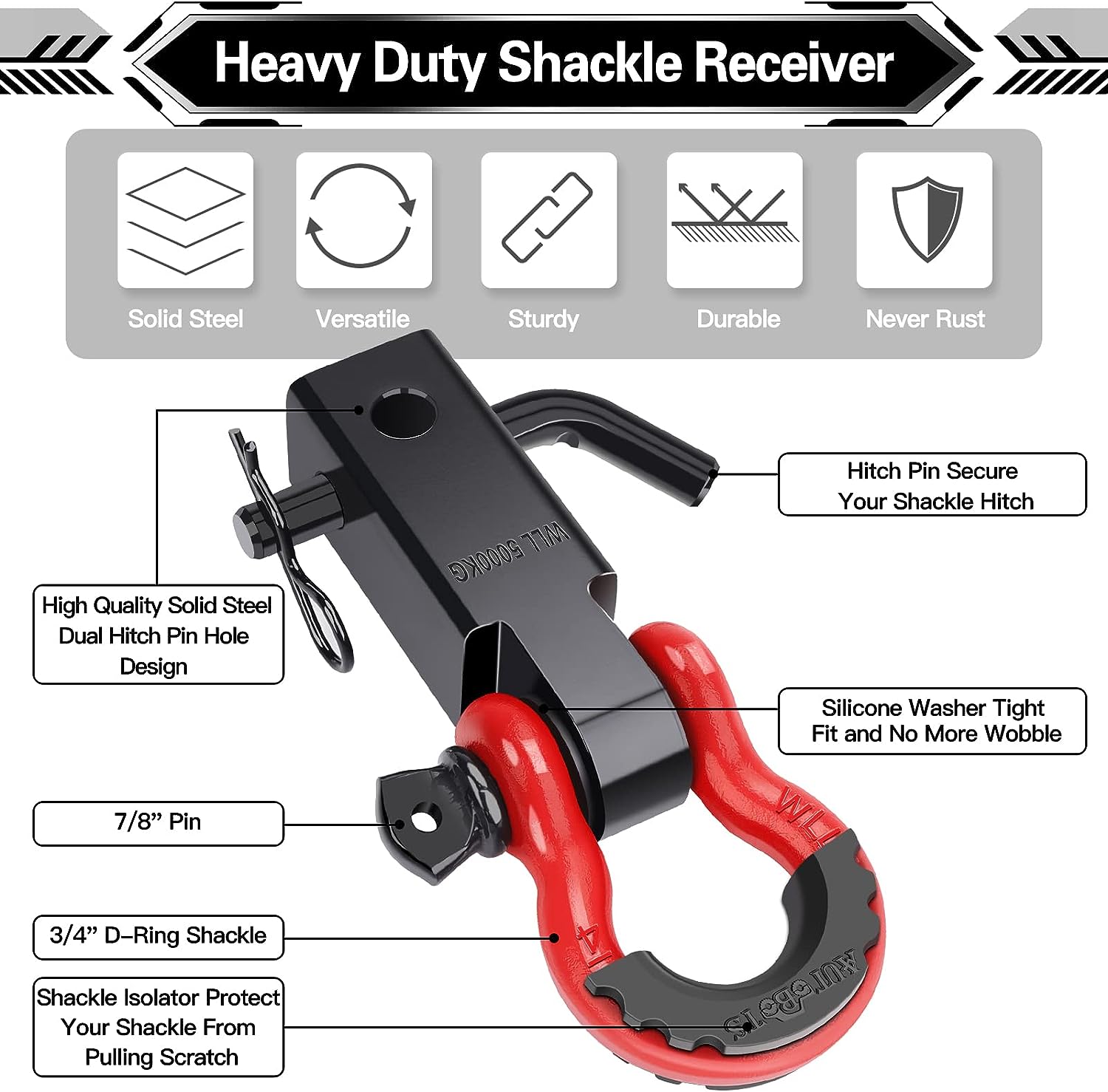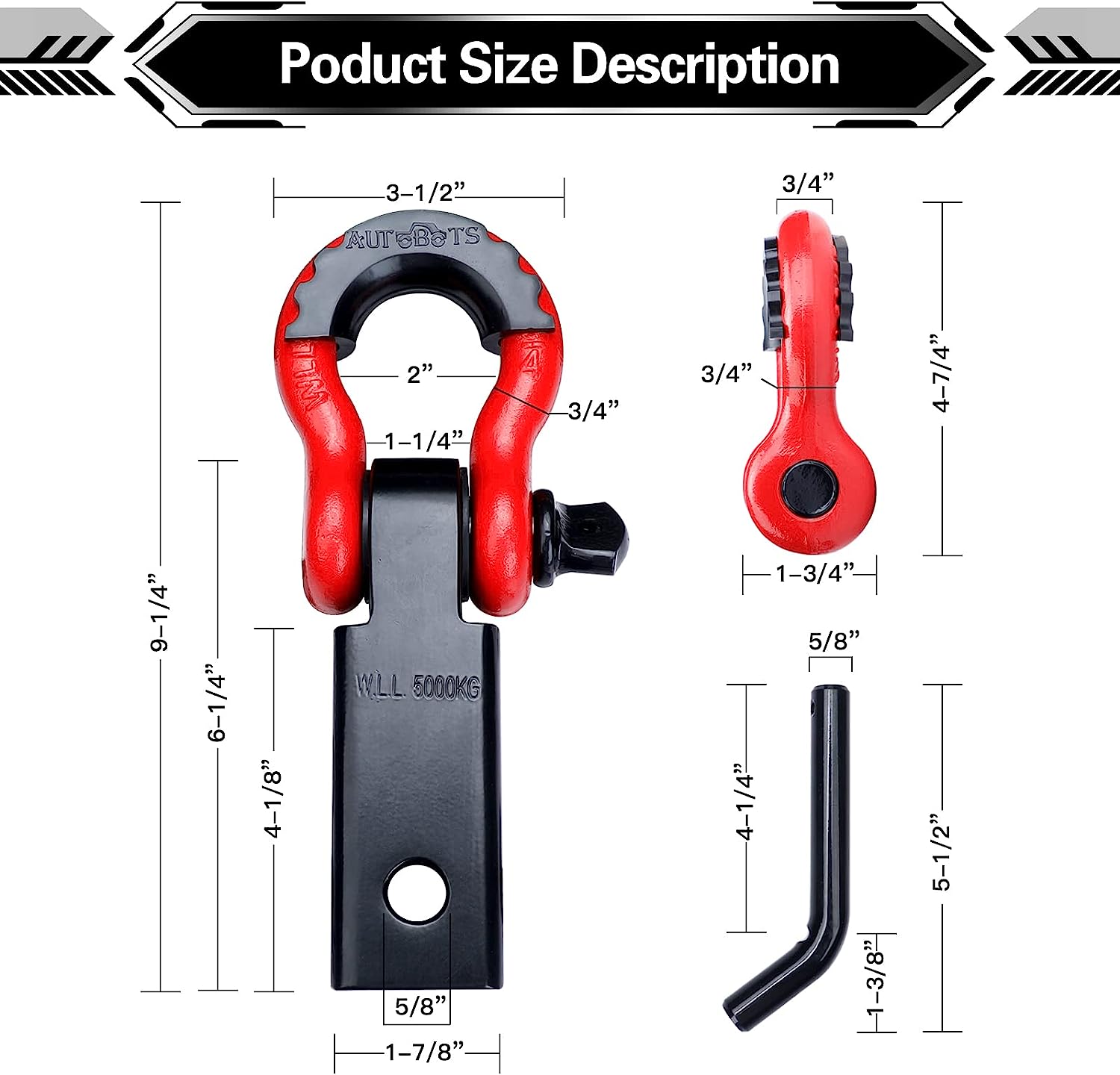 AUTOBOTS Shackle Hitch Receiver 2", 45,000 Lbs Break Strength Heavy Duty Receiver with 5/8" Screw Pin, 3/4" D Ring Shackles, Towing Accessories for Vehicle Recovery Off-Road, Red&Black