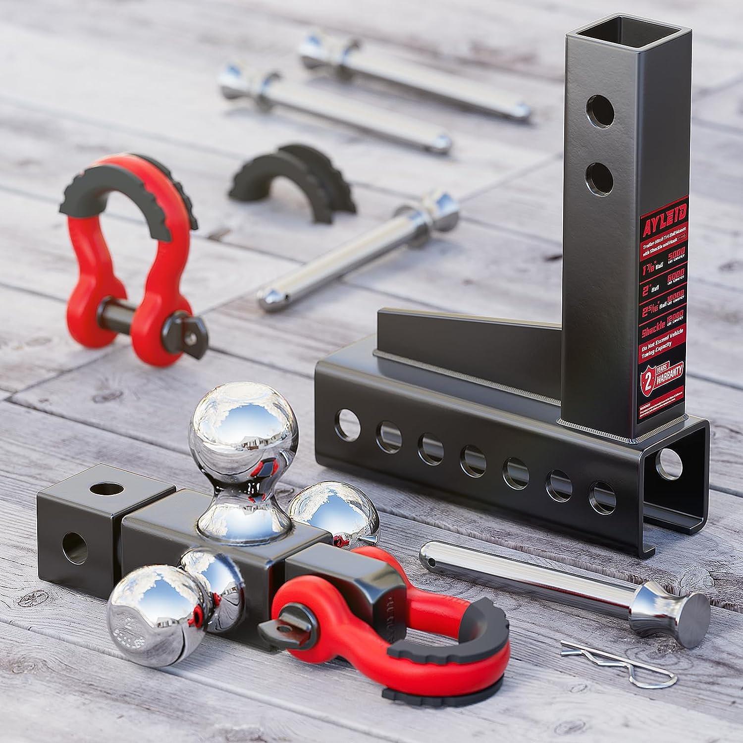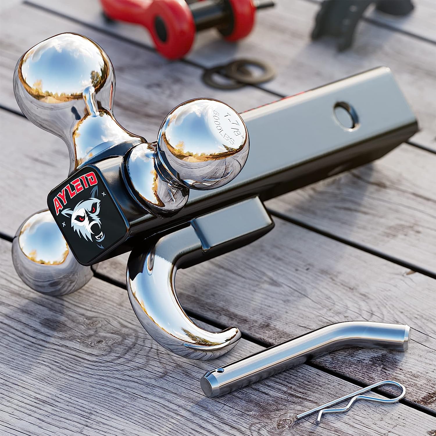 Ayleid Trailer Hitch Tri-Ball Mount with Hook&Pin&Rotatable Tow Shackle,Fits 2-in Receiver with 1-7/8-in,2-in,2-5/16-in Hitch Ball