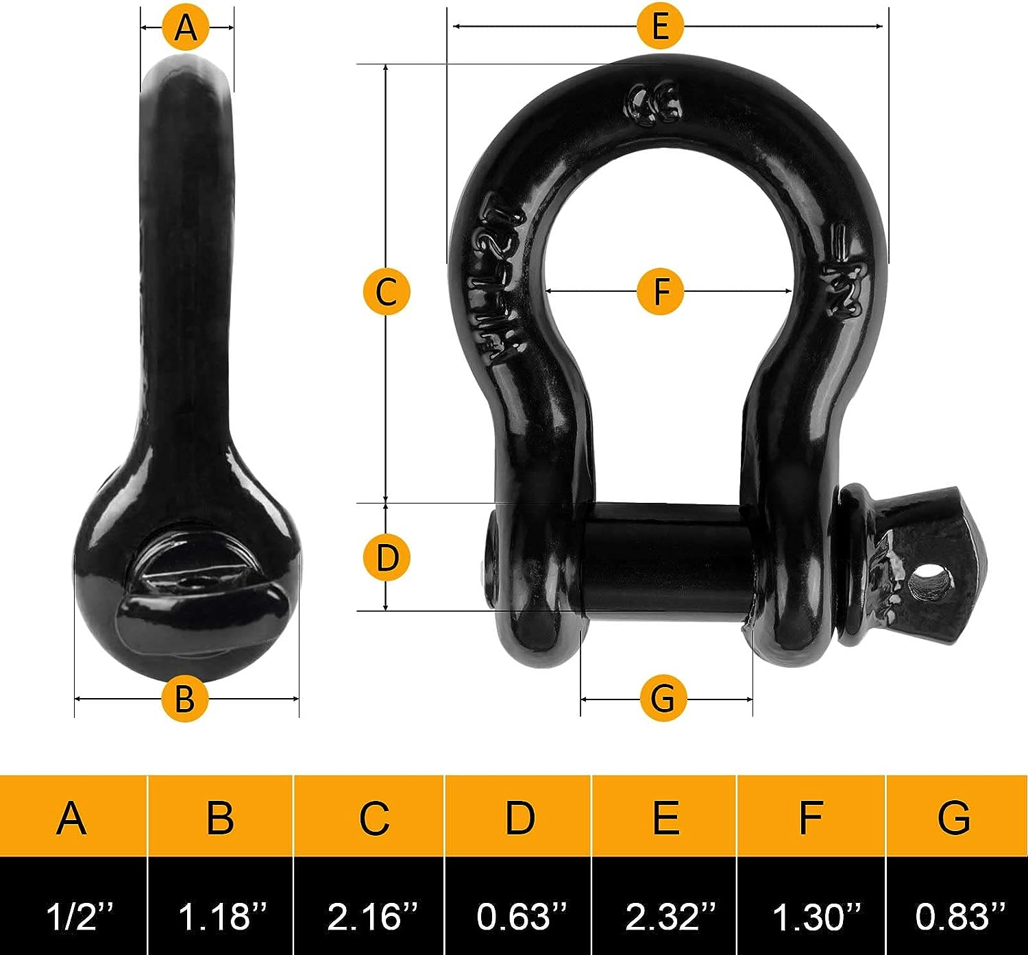 • 【PRODUCT PARAMETERS】D Ring 1/2" Shackle,removable Screw Pin,work Load Limit:2 Ton(4,409lbs),12 Ton(26,455 Lbs) Breaking Strength