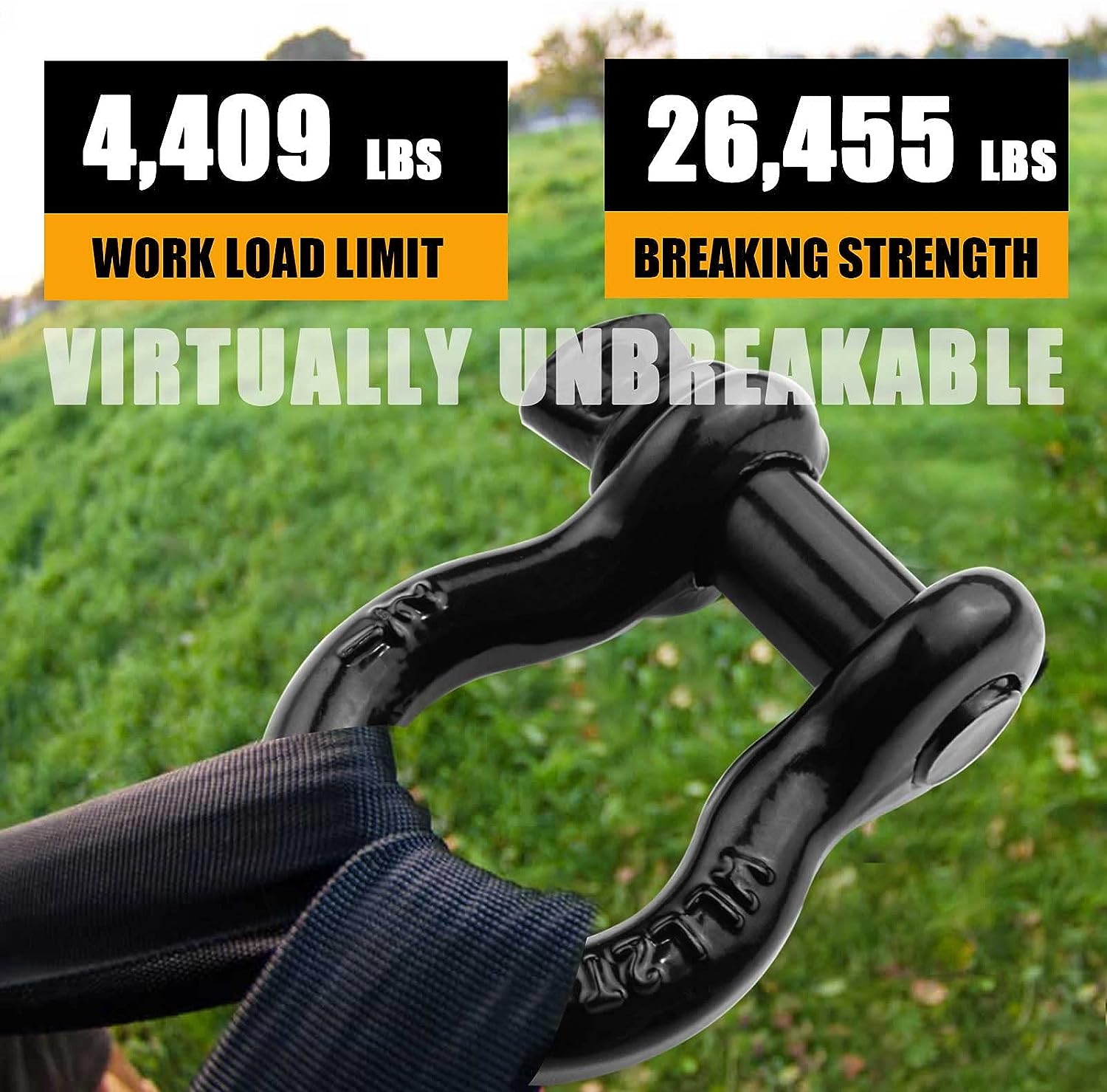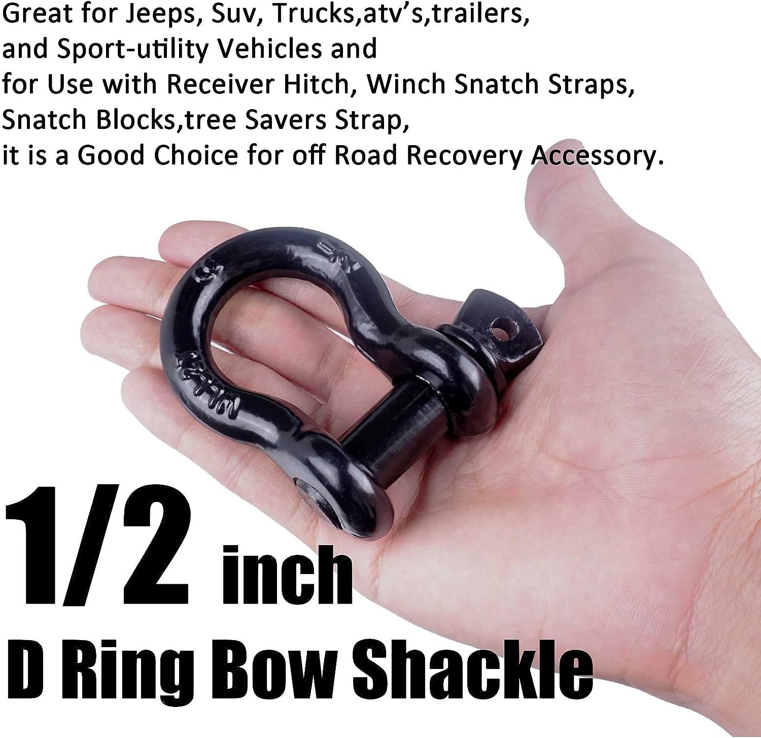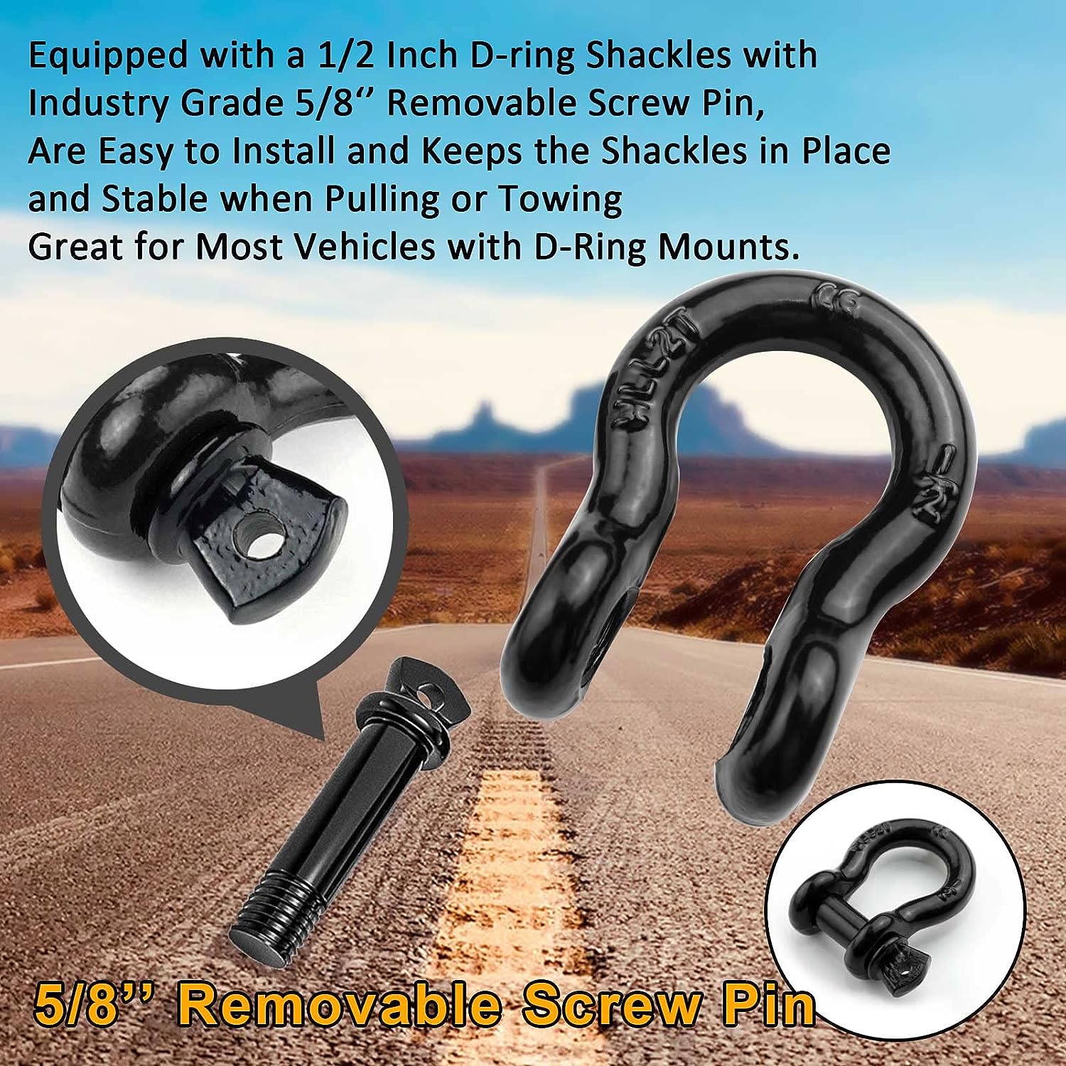 • 【UNIVERSAL & EASY TO USE】Equipped with a 1/2 Inch D-ring Shackles with Industry Grade 5/8‘’ Removable Screw Pin, Are Easy to Install and Keeps the Shackles in Place and Stable when Pulling or Towing Great for Most Vehicles with D-Ring Mounts.for Jeeps, Suv, Trucks,atv’s,trailers, and Sport-utility Vehicles and for Use with Receiver Hitch, Winch Snatch Straps, Snatch Blocks,tree Savers Strap,it is a Good Choice for off Road Recovery Accessory