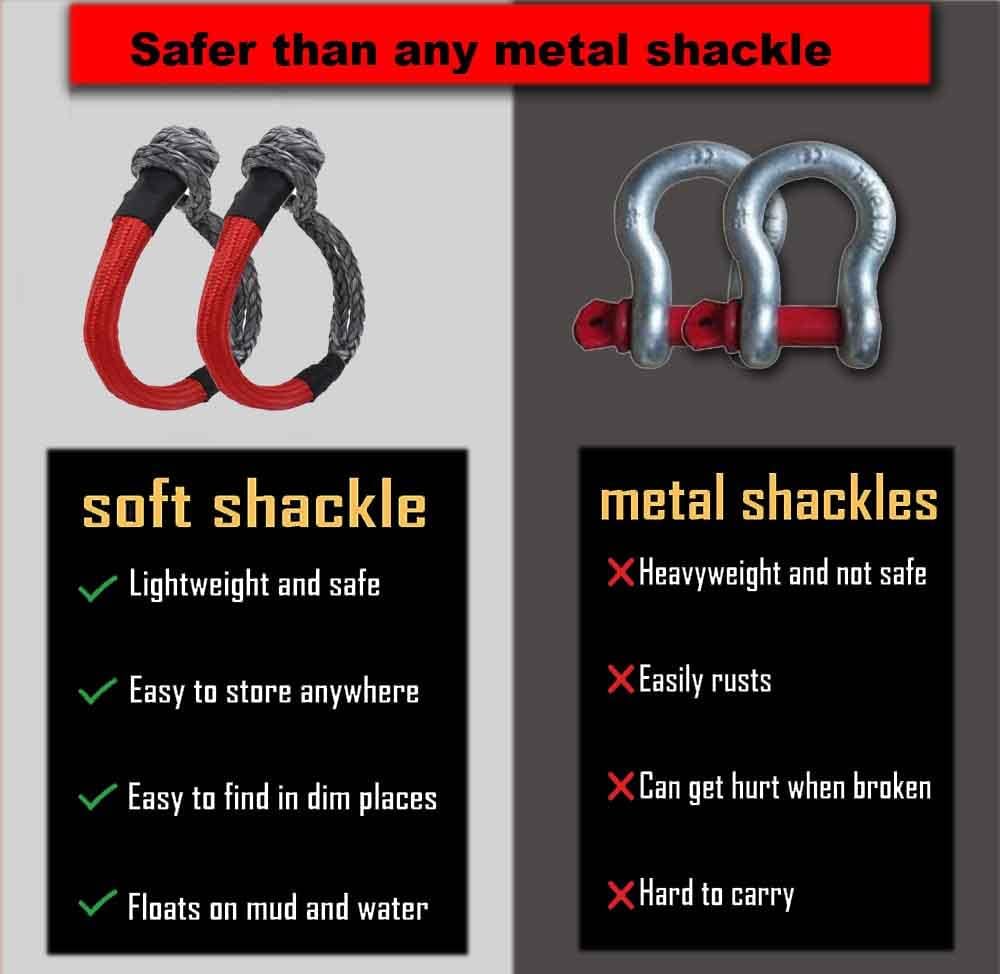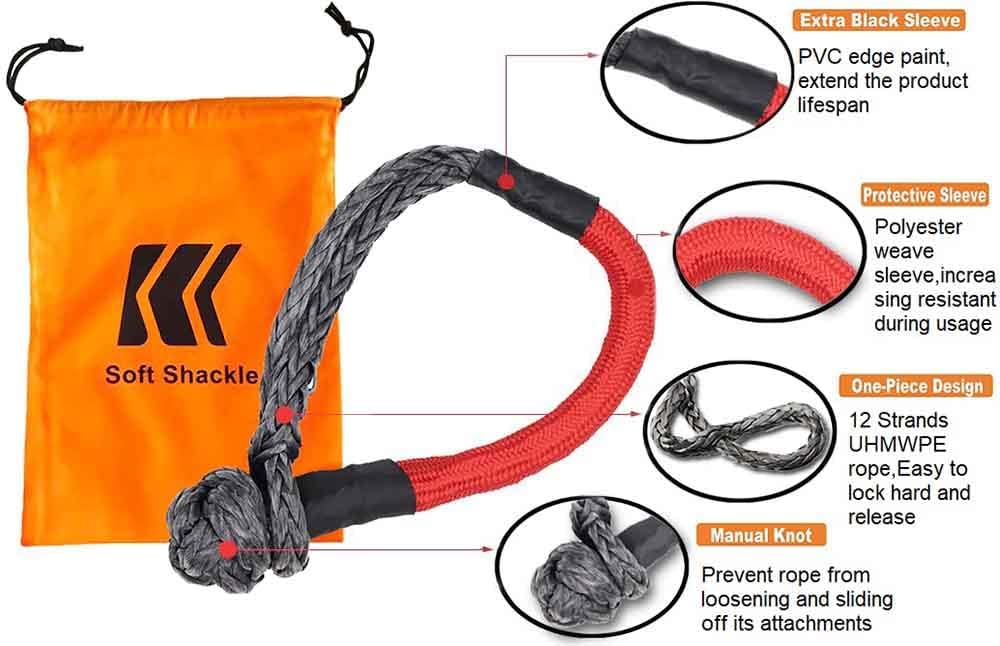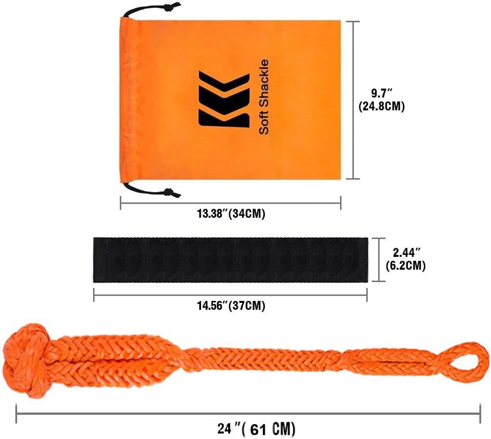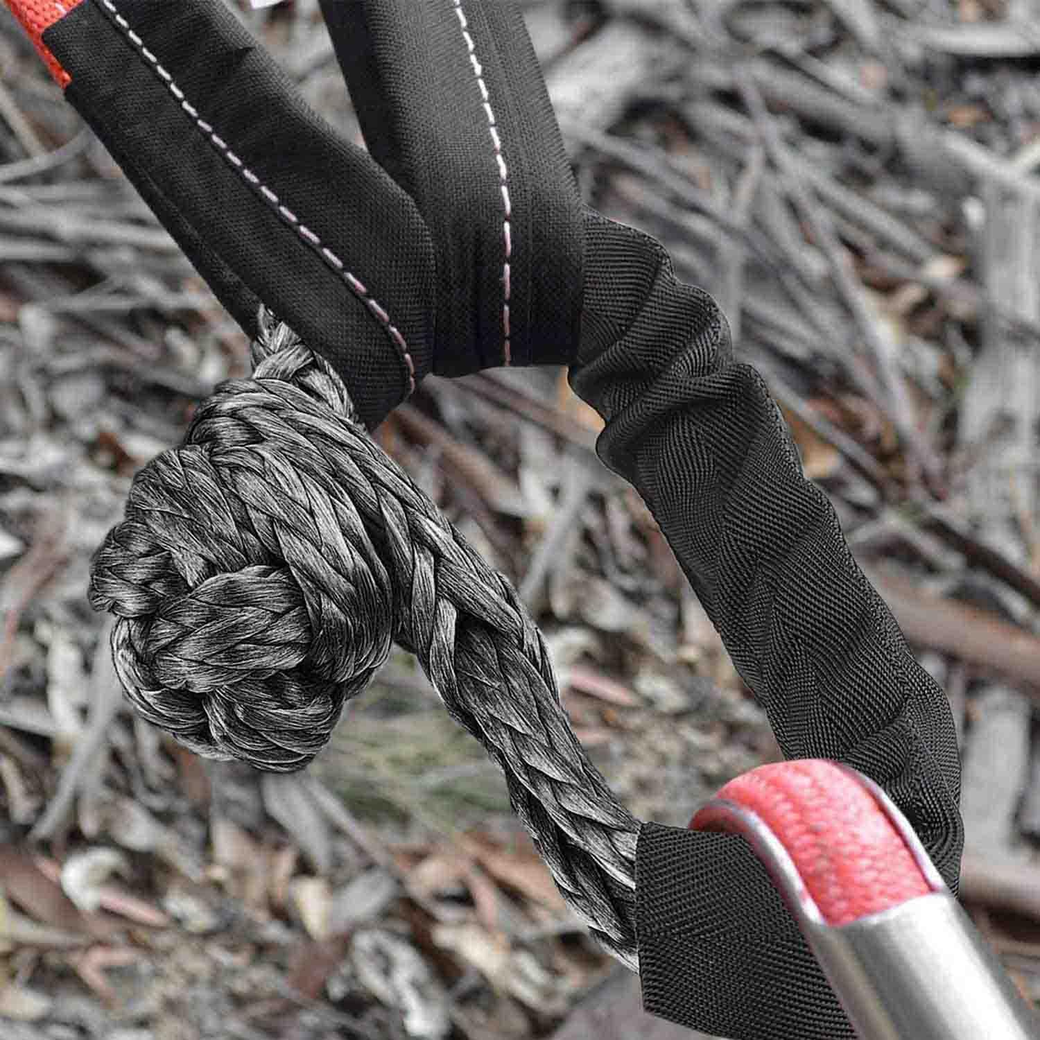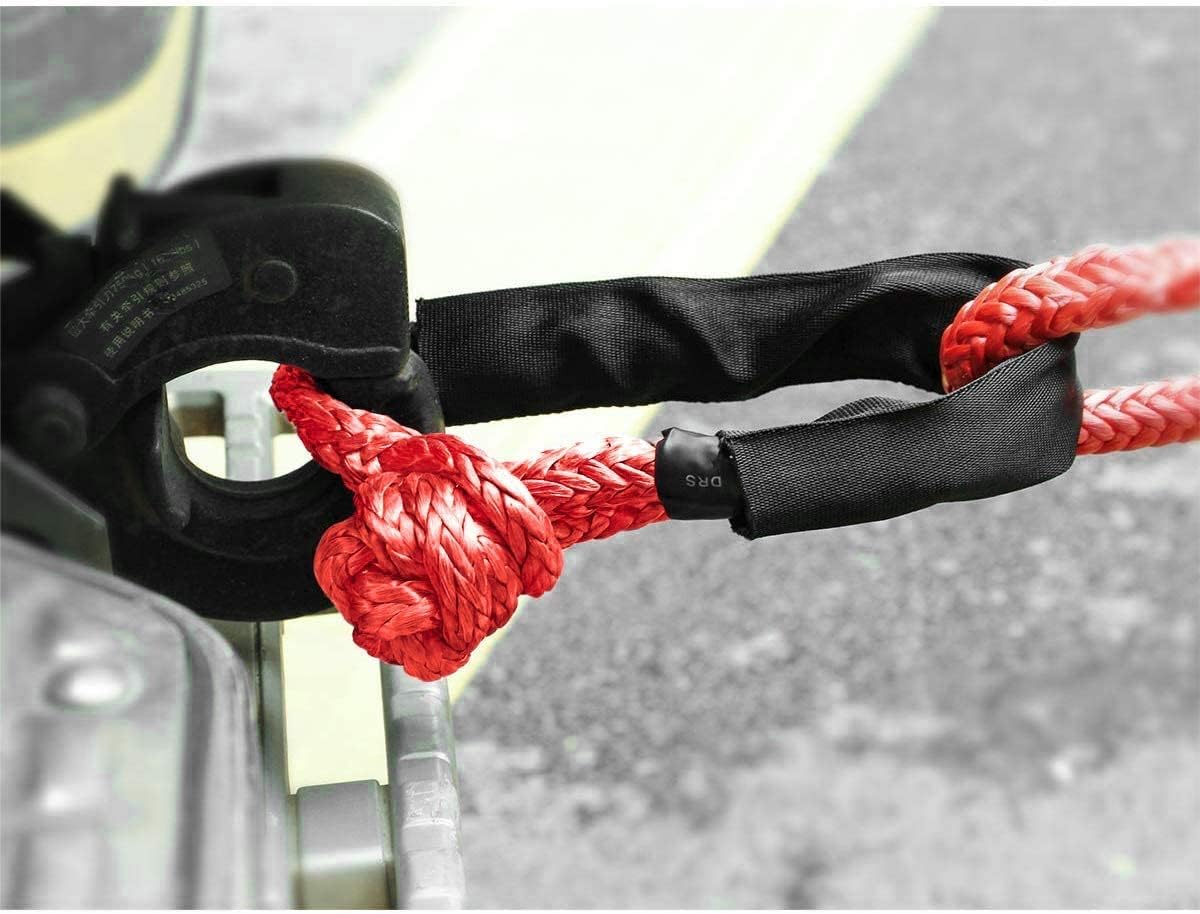 • 【Durable & Safer】 -- Much nicer than metal shackles easy to store and easy on and off. Held up to pulling out a large tree. Comes with Extra Protective Sleeve, increase the friction and protecting the rope from abrasion