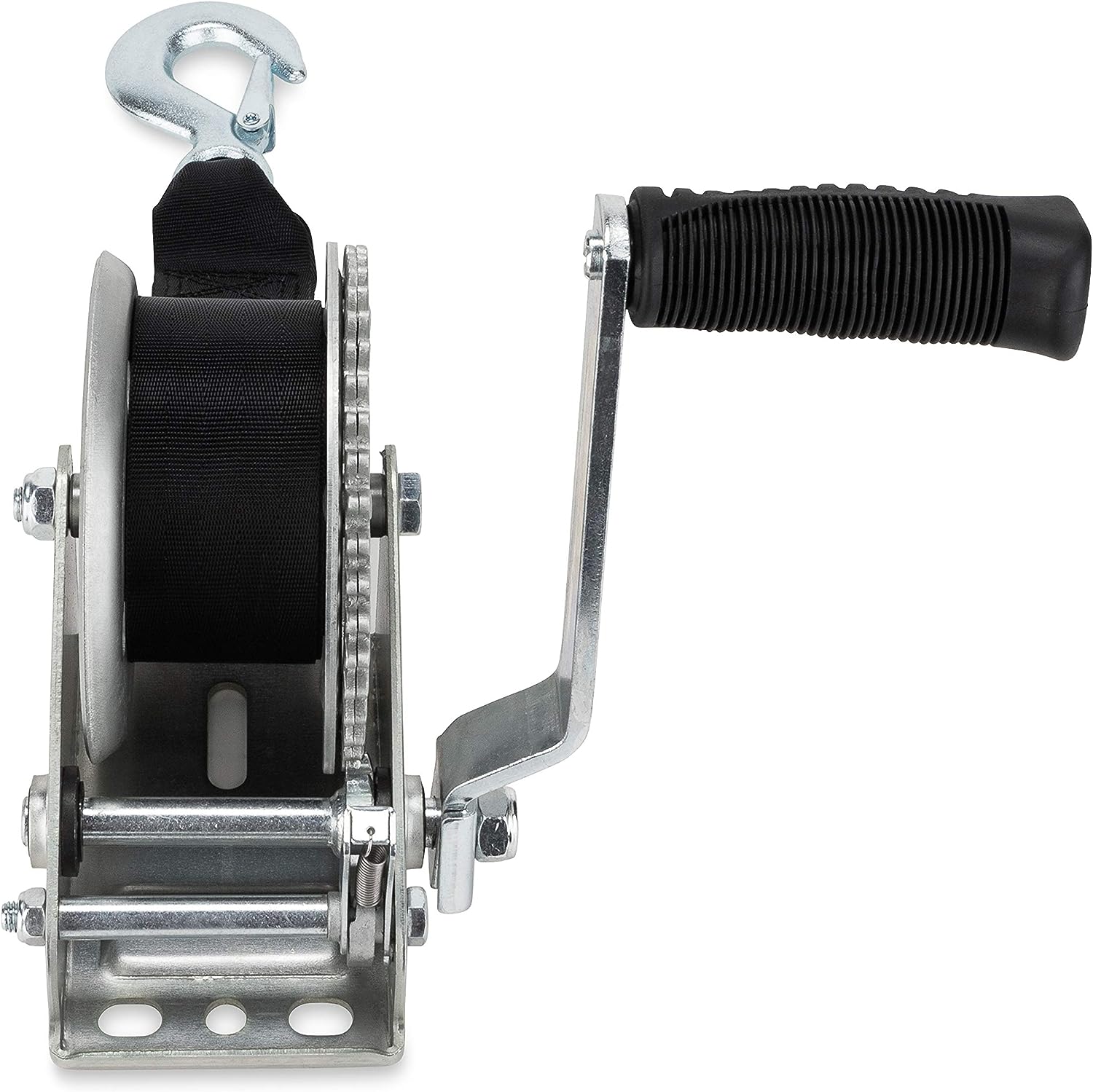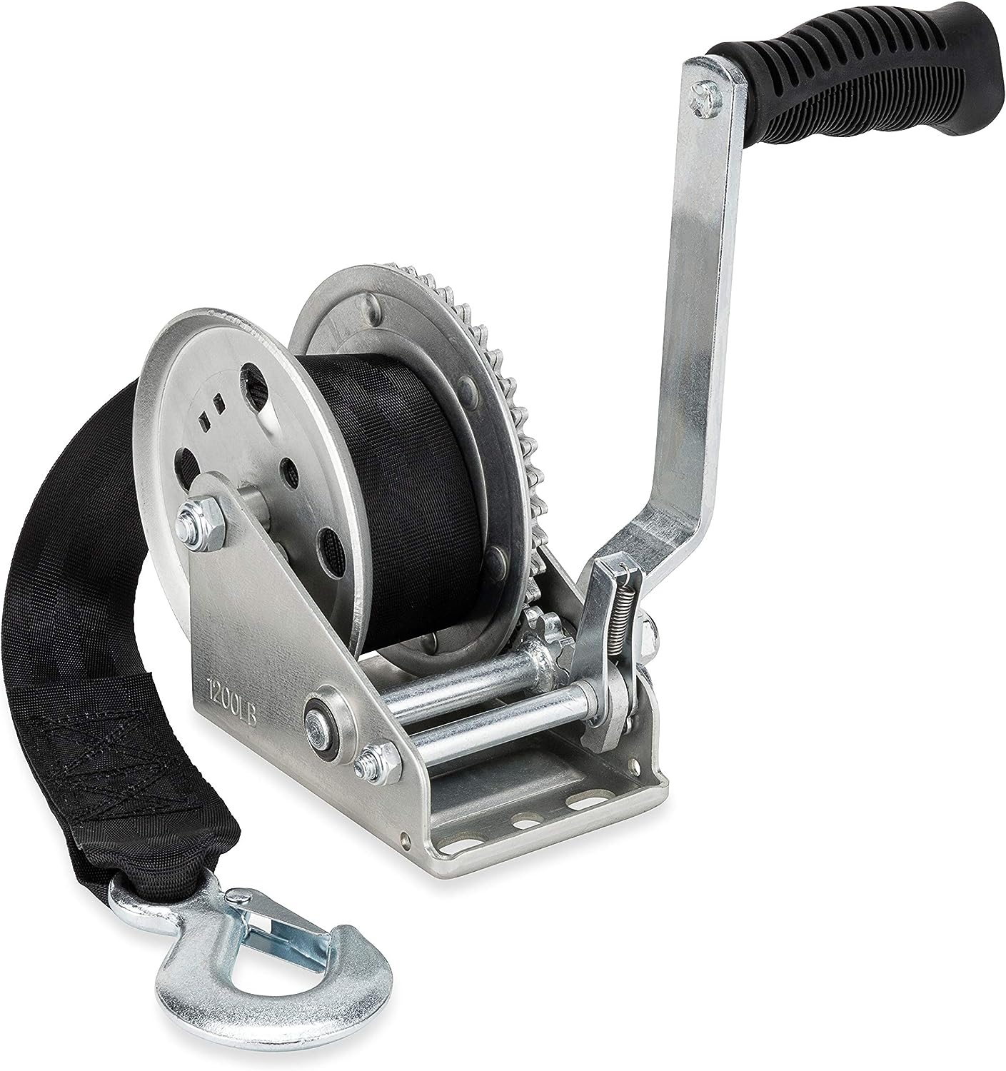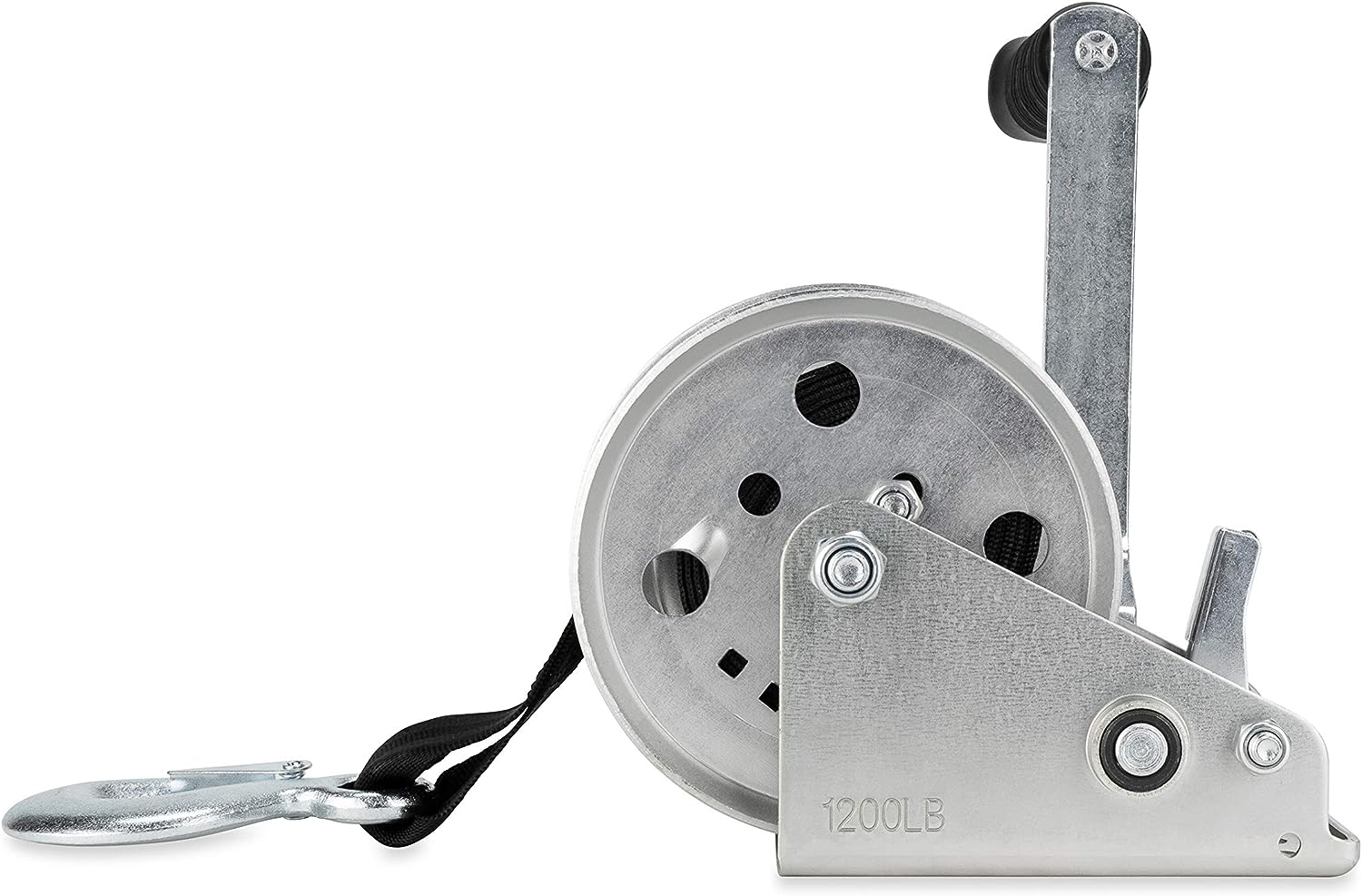 Camco's Heavy-Duty Trailer Boat Winch allows you to load your boat onto your tow trailer smoothly, safely, and accurately. The winch features a two-way ratchet with a neutral position for ease of use. It also includes a comfort grip handle for simple, comfortable cranking. The included 20-foot (L) x 2-inch (W) polyester webbing strap has a 2,000 lb. weight capacity. Its brake and 4:1 ratio gears are made of heat-treated high carbon steel; the winch is constructed of corrosion-resilient zinc-plated steel that protects against sun damage. This product includes: (1) boat crank winch, (1) 20-foot (L) x 2-inch (W) polyester webbing strap, and (1) snap hook.