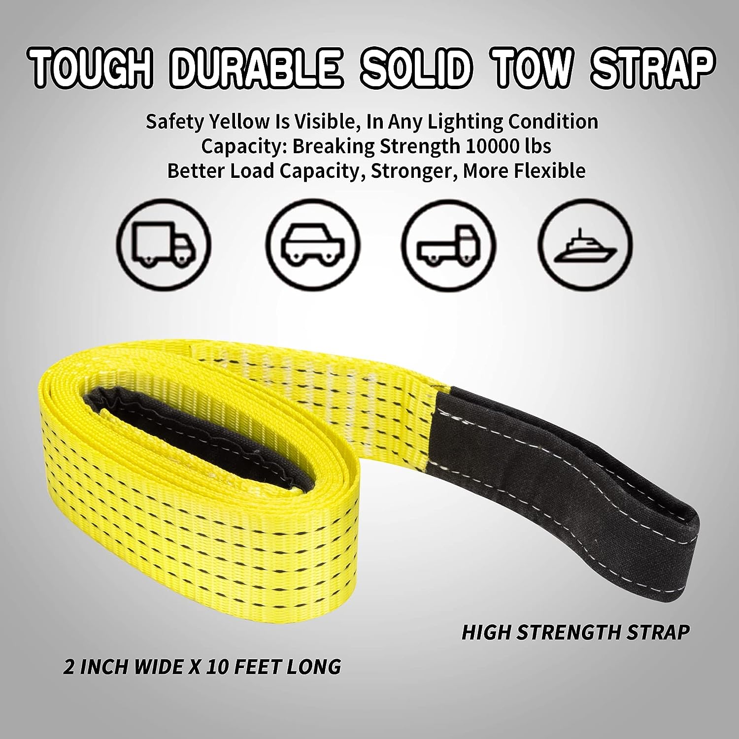 • A Superior Design & Weather Resistant: Our tow strap is made from tightly moisture and heat resistant polyester material. with the conspicuous yellow color of towing straps makes it safer while being used at any time or places.