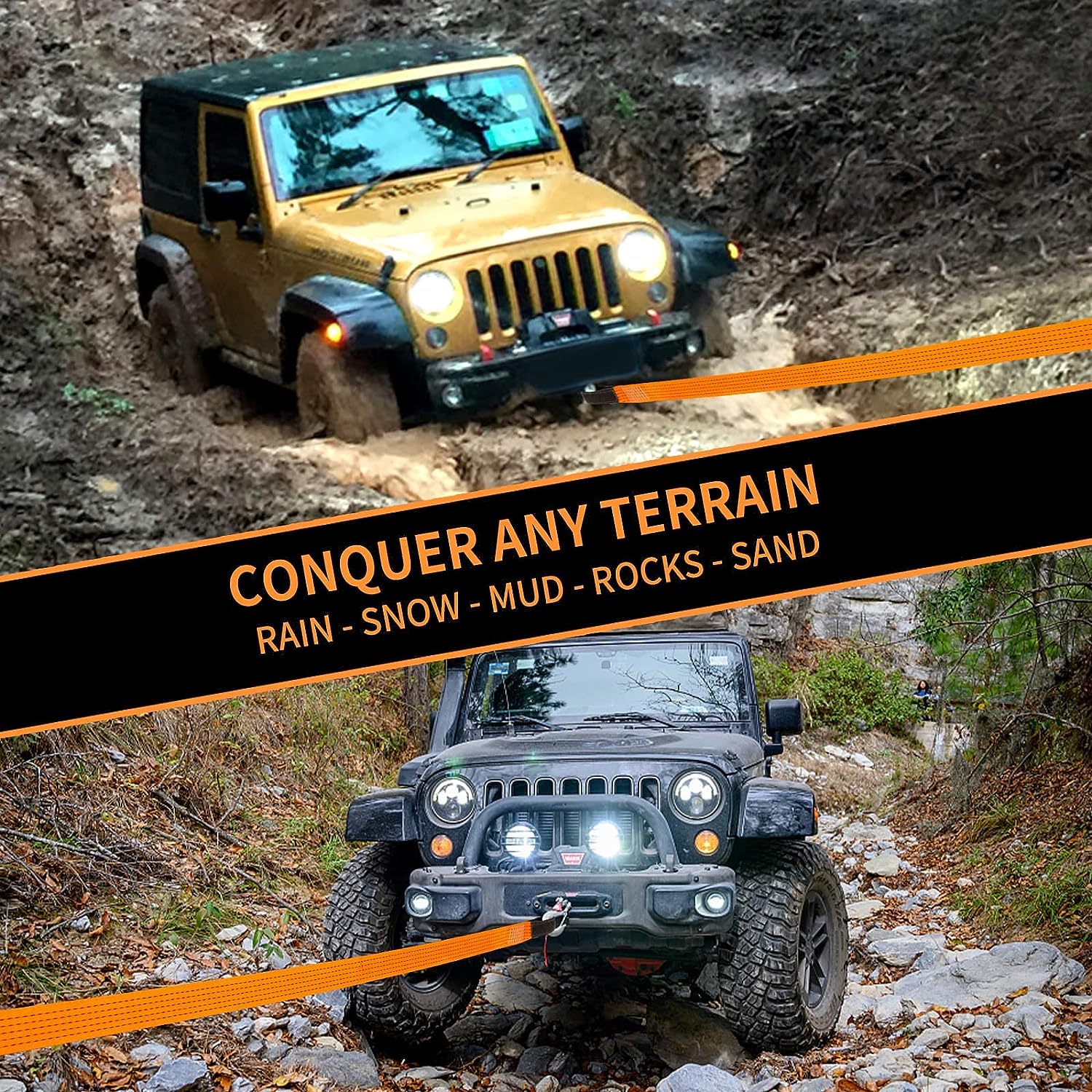 • Black Reinforced Eye Loops: Our large double-web-loop ends are padded and reinforced, against abrasion, This allows our recovery strap to withstand the high tension and wear that typically occurs at connection points, Wash and keep it clean to elongate its lifespan.