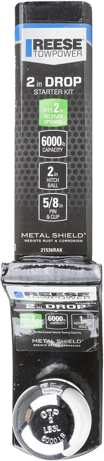 The Reese Towpower Class III Standard Starter Kits come complete with ball mount, hitch ball, pin and clip. Built tough for unparalleled strength, Reese ball mounts fight rust and corrosion with Metal Shield, a superior coating for years of protection from the elements. The chrome hitch balls are constructed of solid steel and engineered to meet all safety requirements.