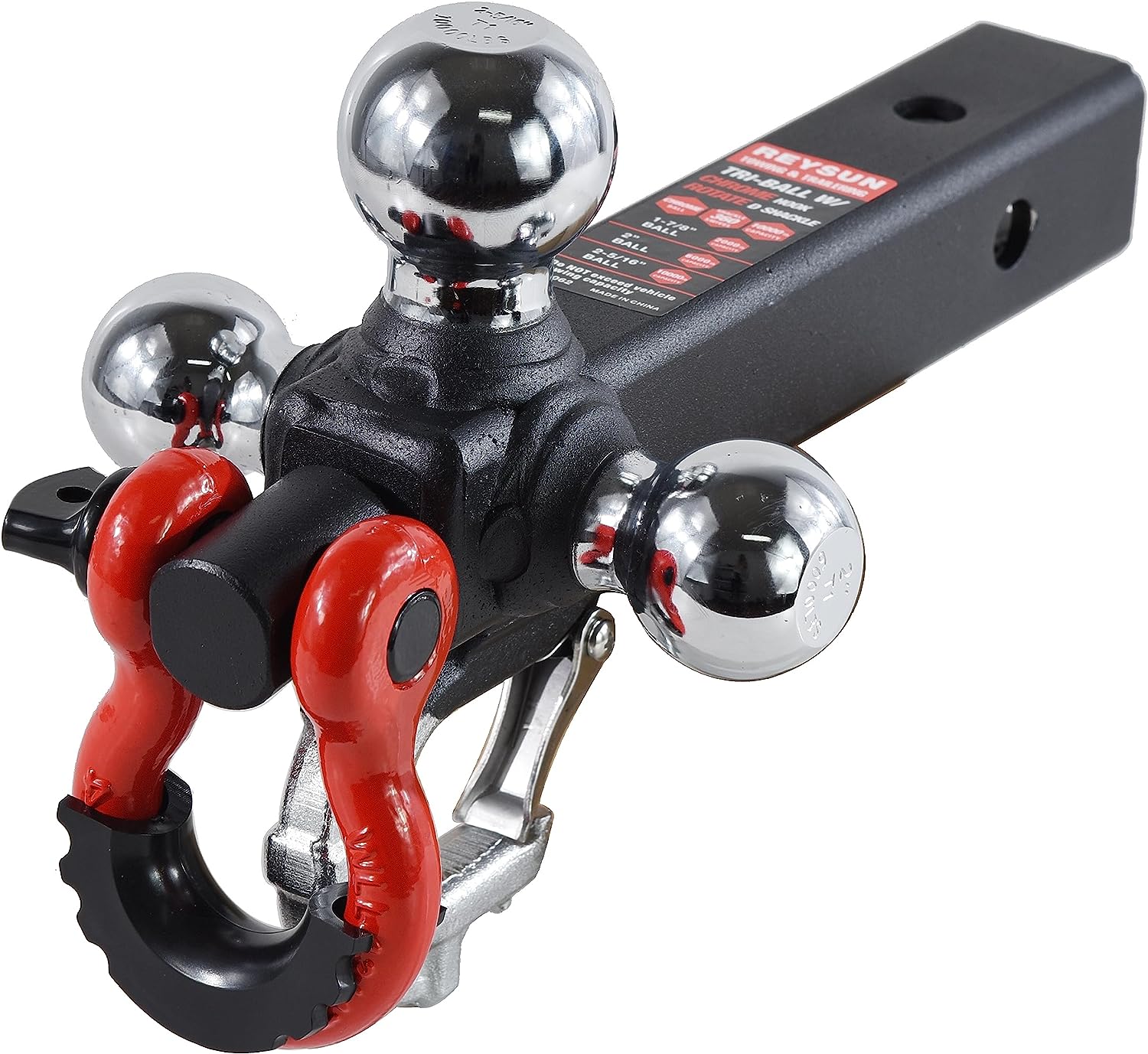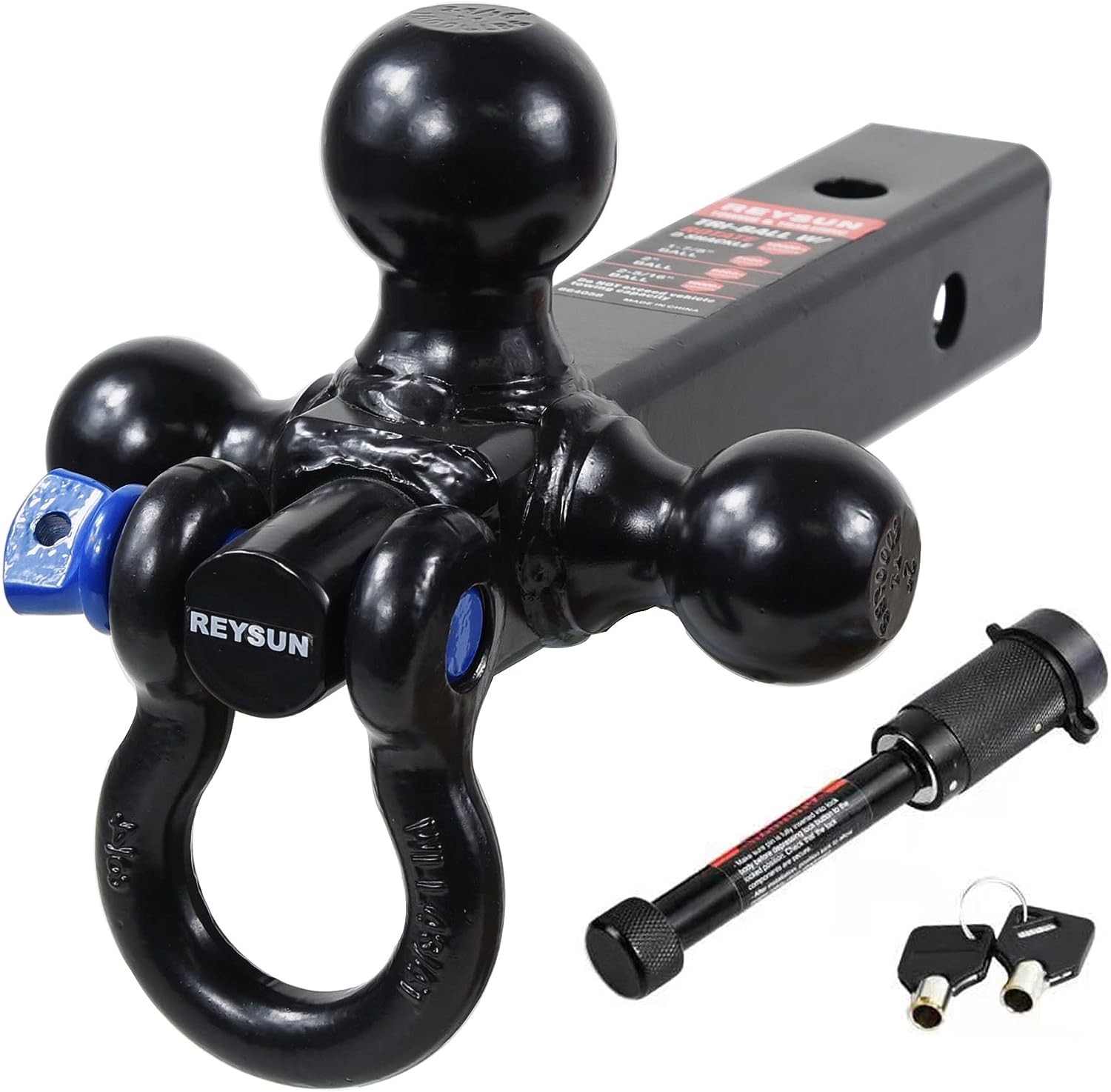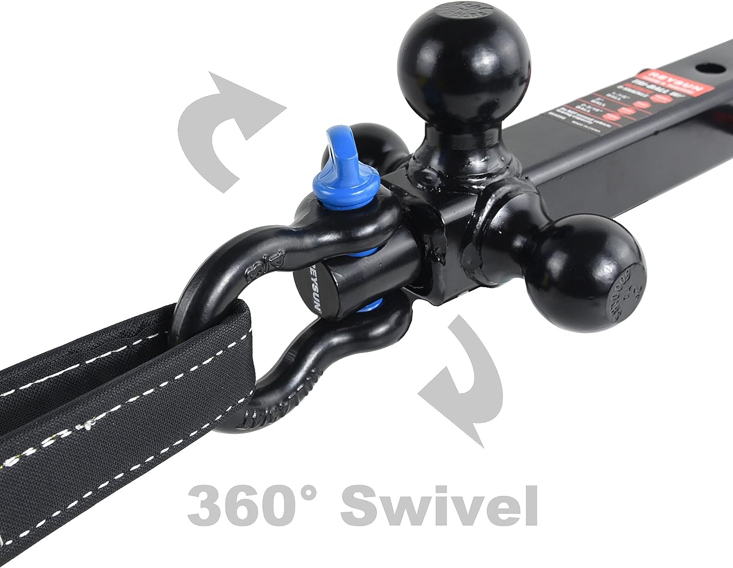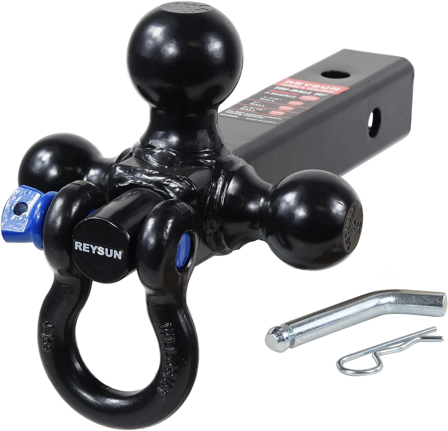 REYSUN 864058 Recovery Trailer Hitch Tri Ball Mount and 360 Swivel Tow Shackle, fits for 2" Receiver, Class V Hitch Lock Included…