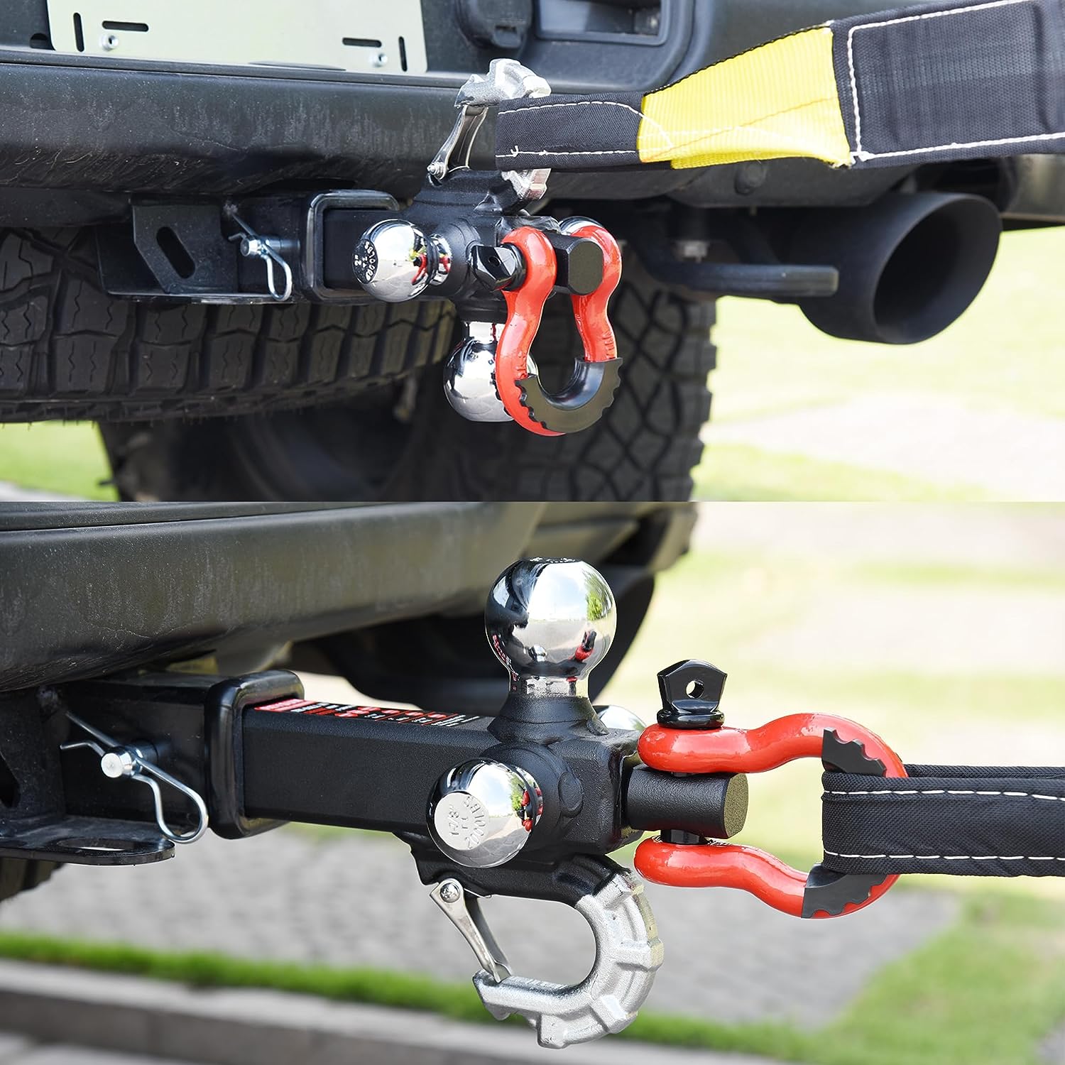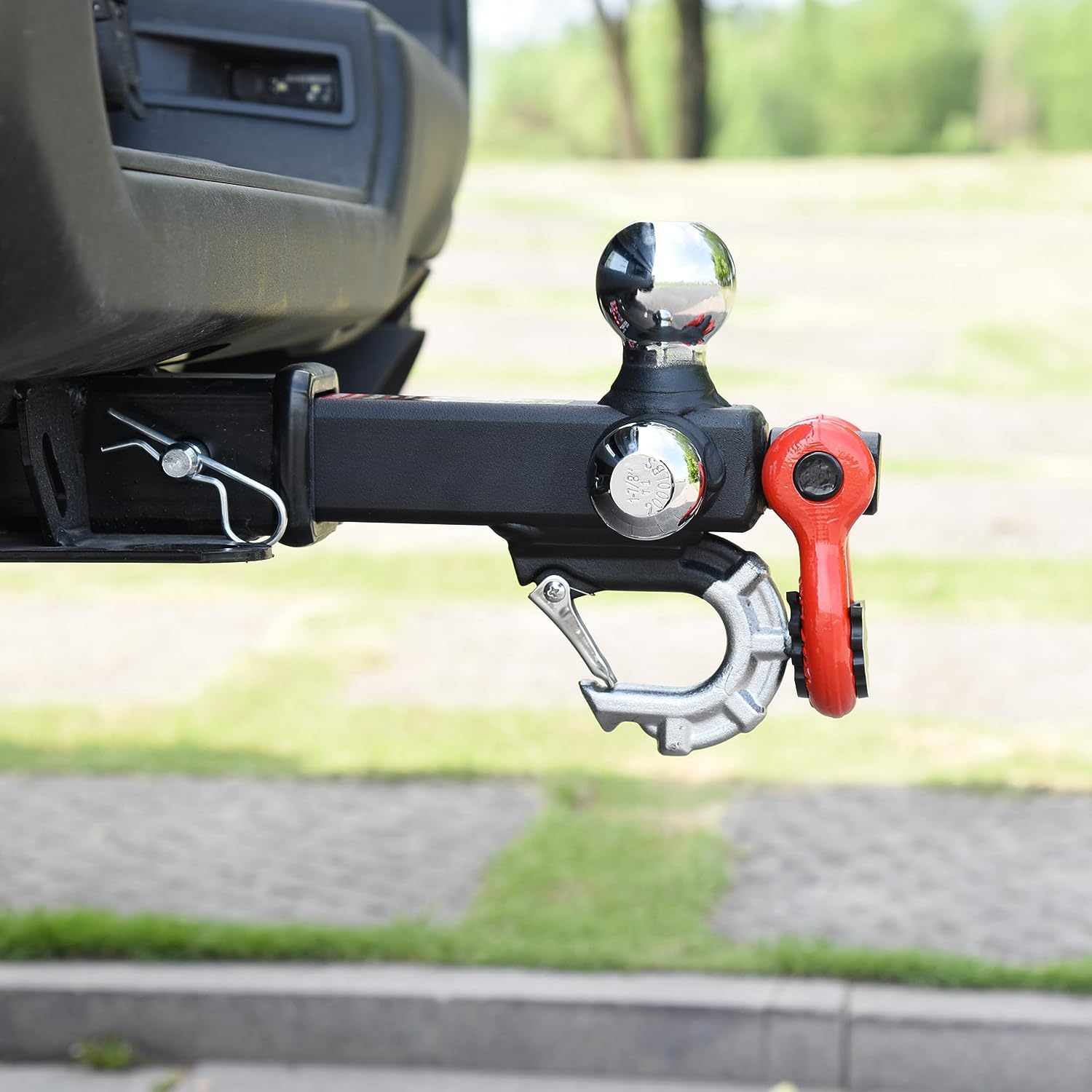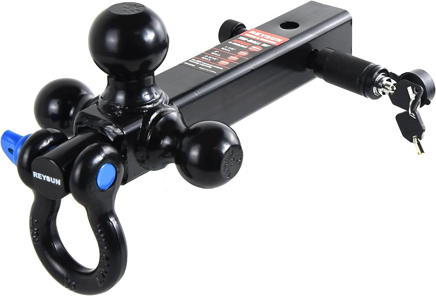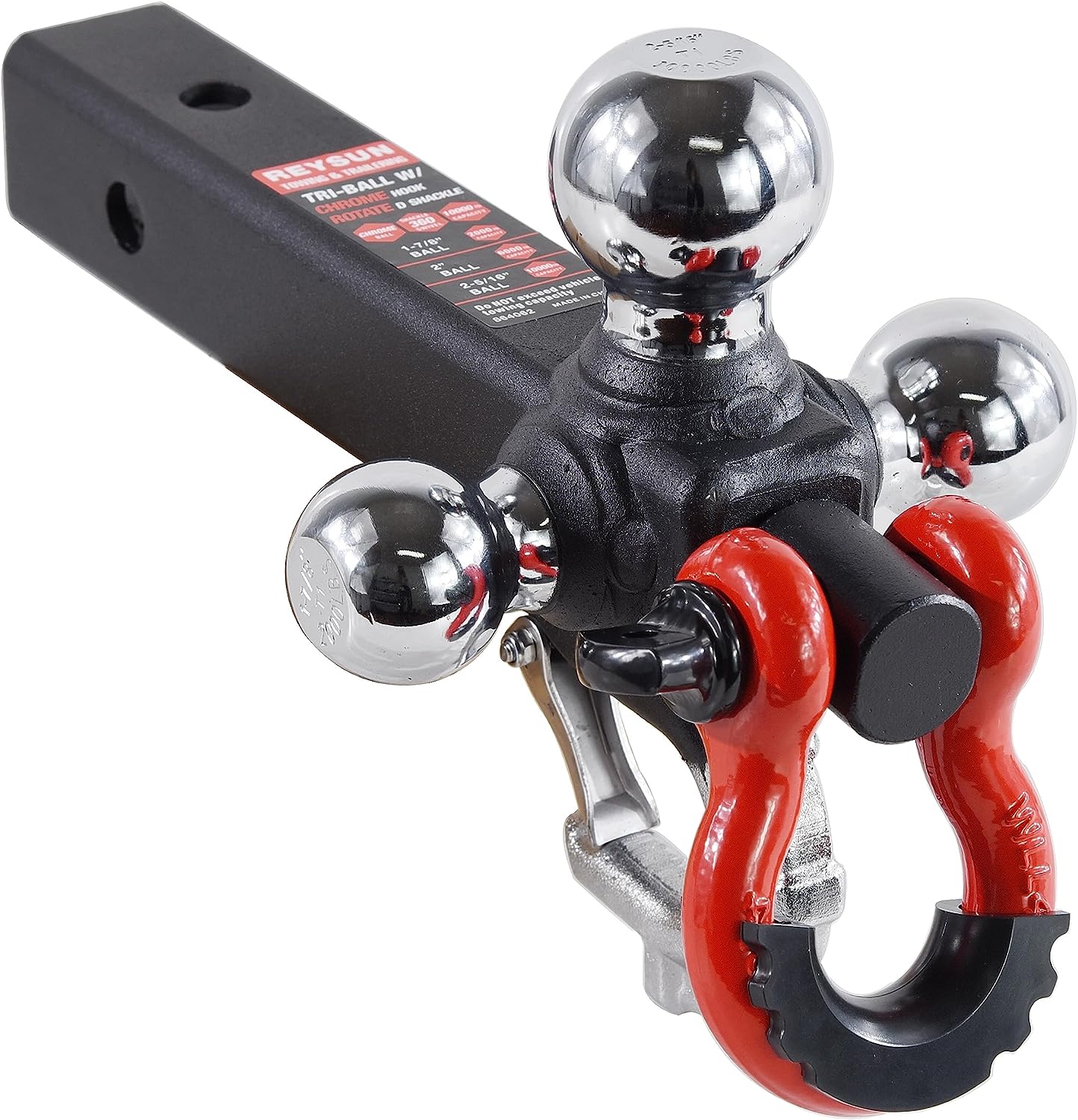 REYSUN 864058 Recovery Trailer Hitch Tri Ball Mount and 360 Swivel Tow Shackle, fits for 2" Receiver, Class V Hitch Lock Included…