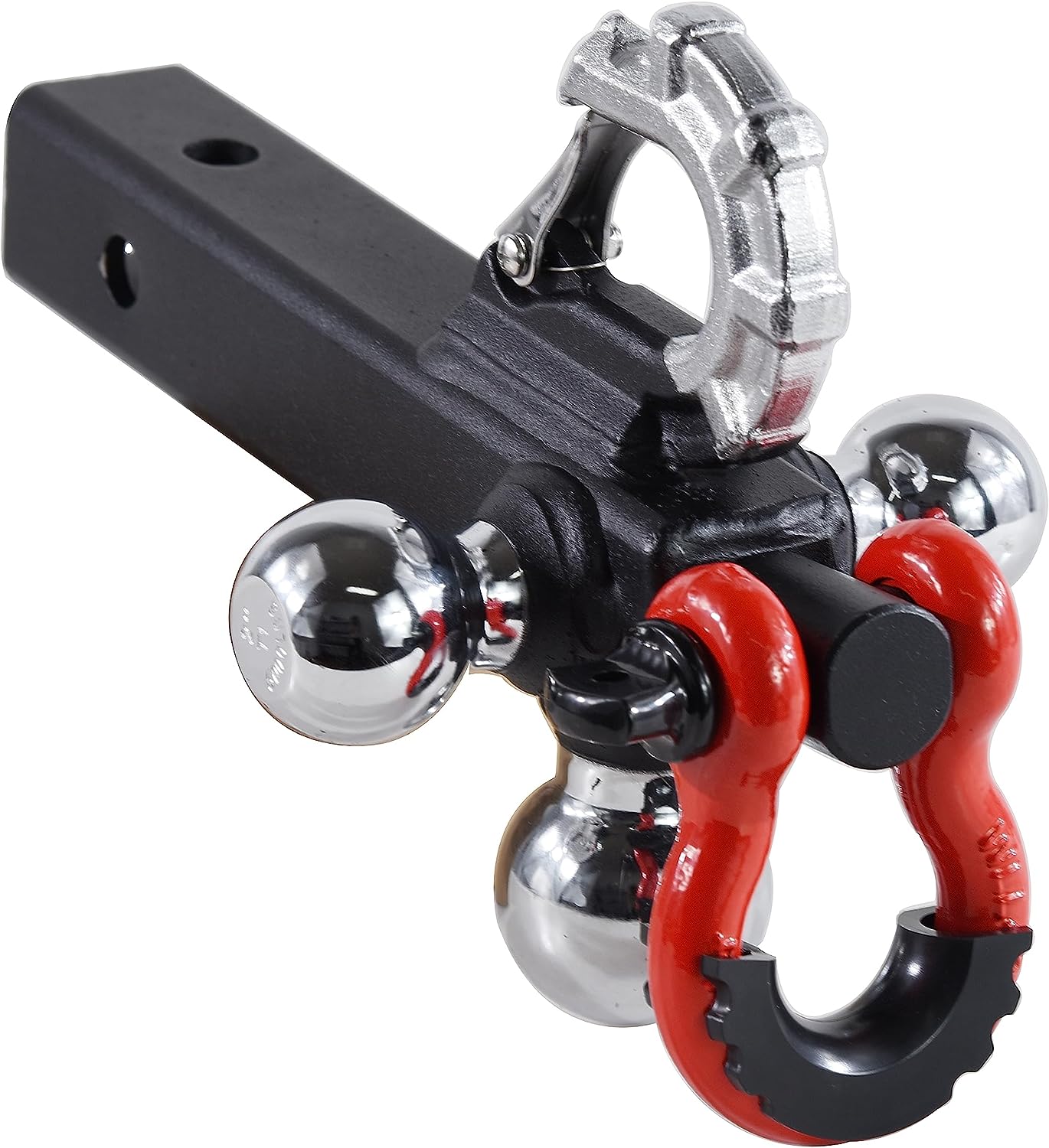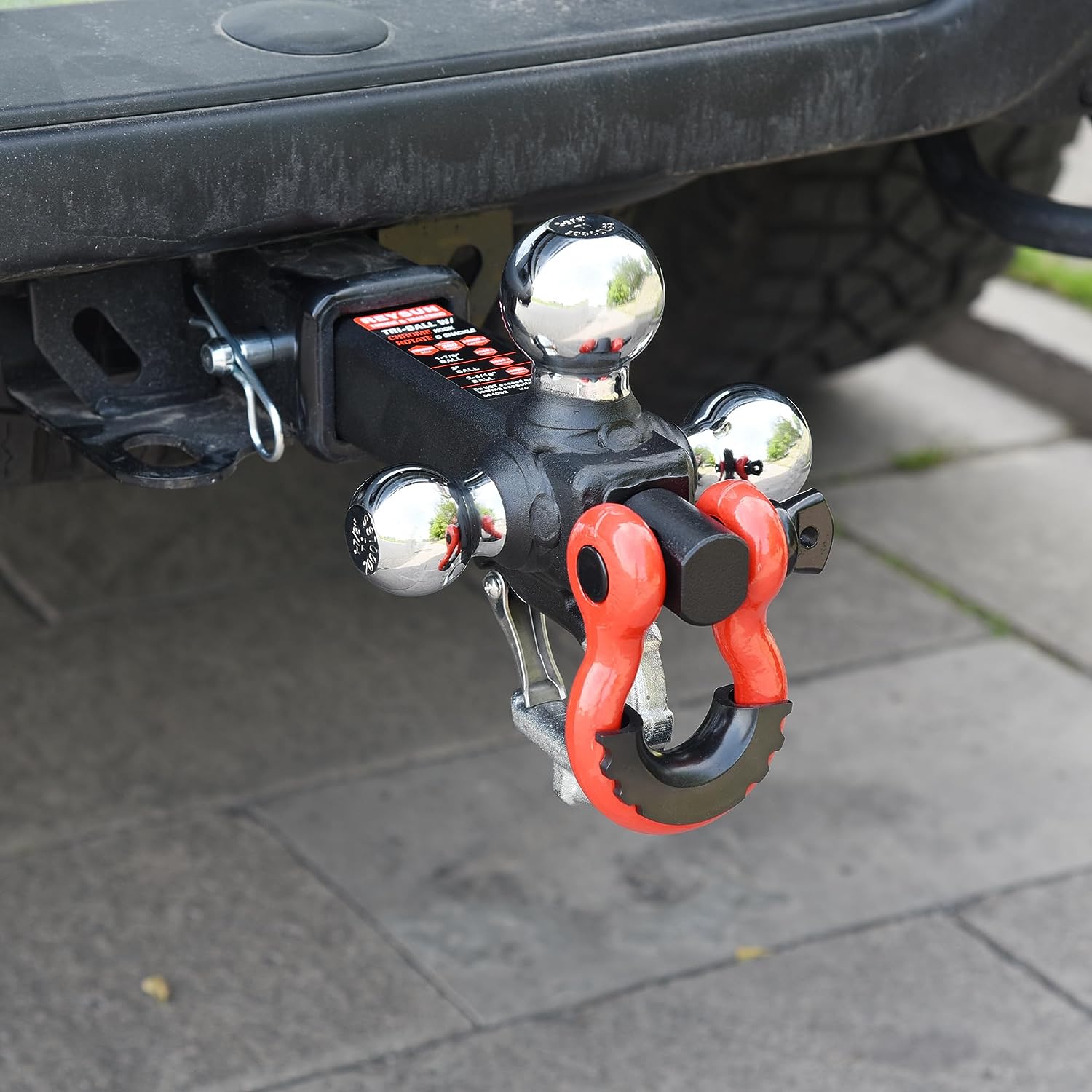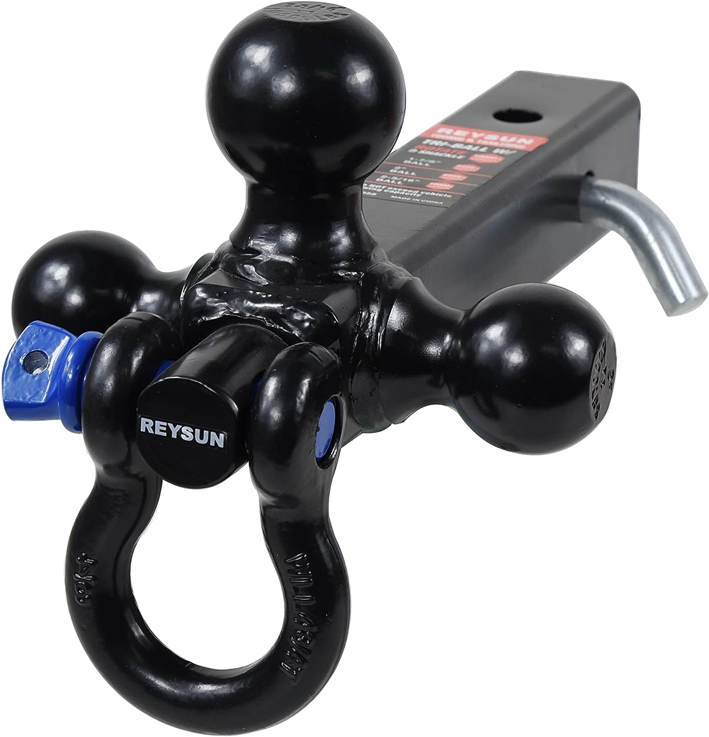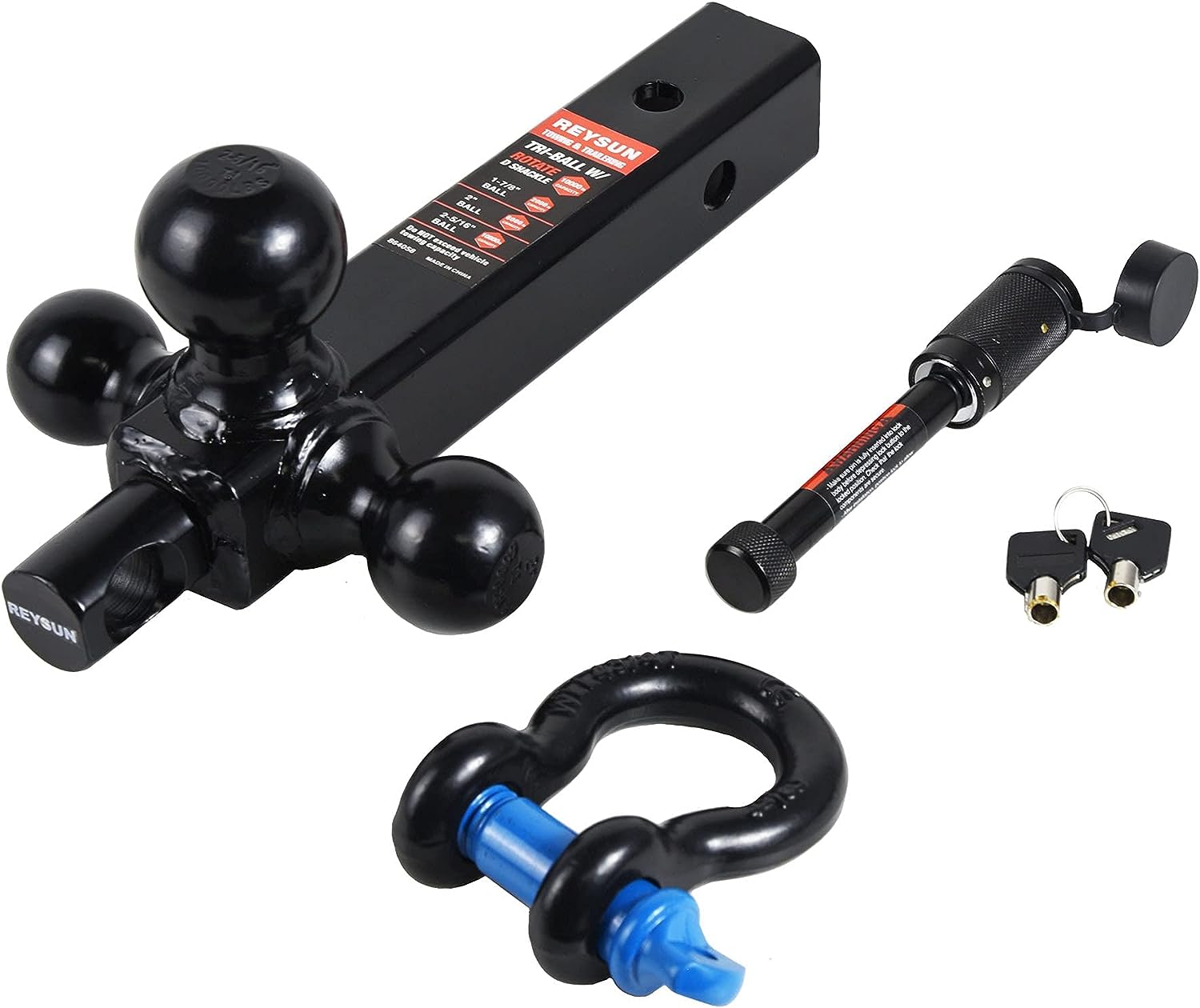 REYSUN 864058 Recovery Trailer Hitch Tri Ball Mount and 360 Swivel Tow Shackle, fits for 2" Receiver, Class V Hitch Lock Included…