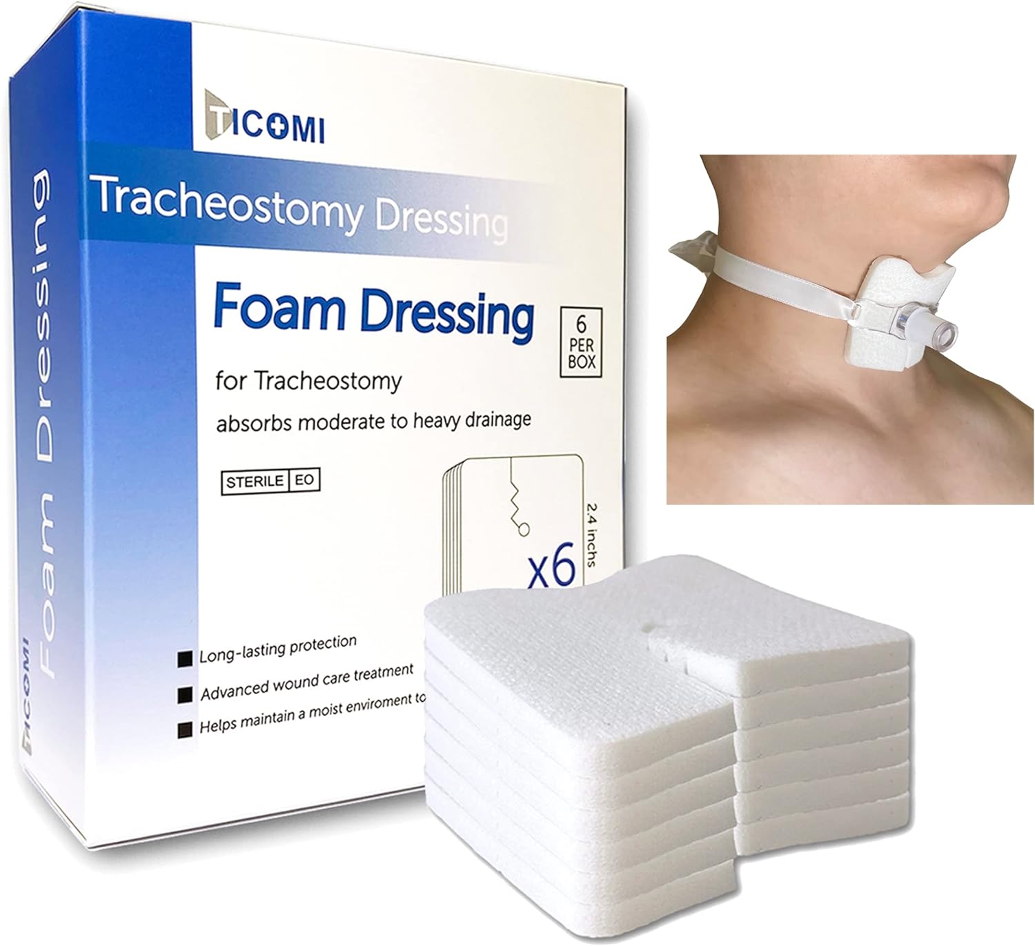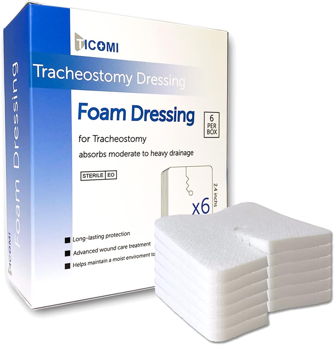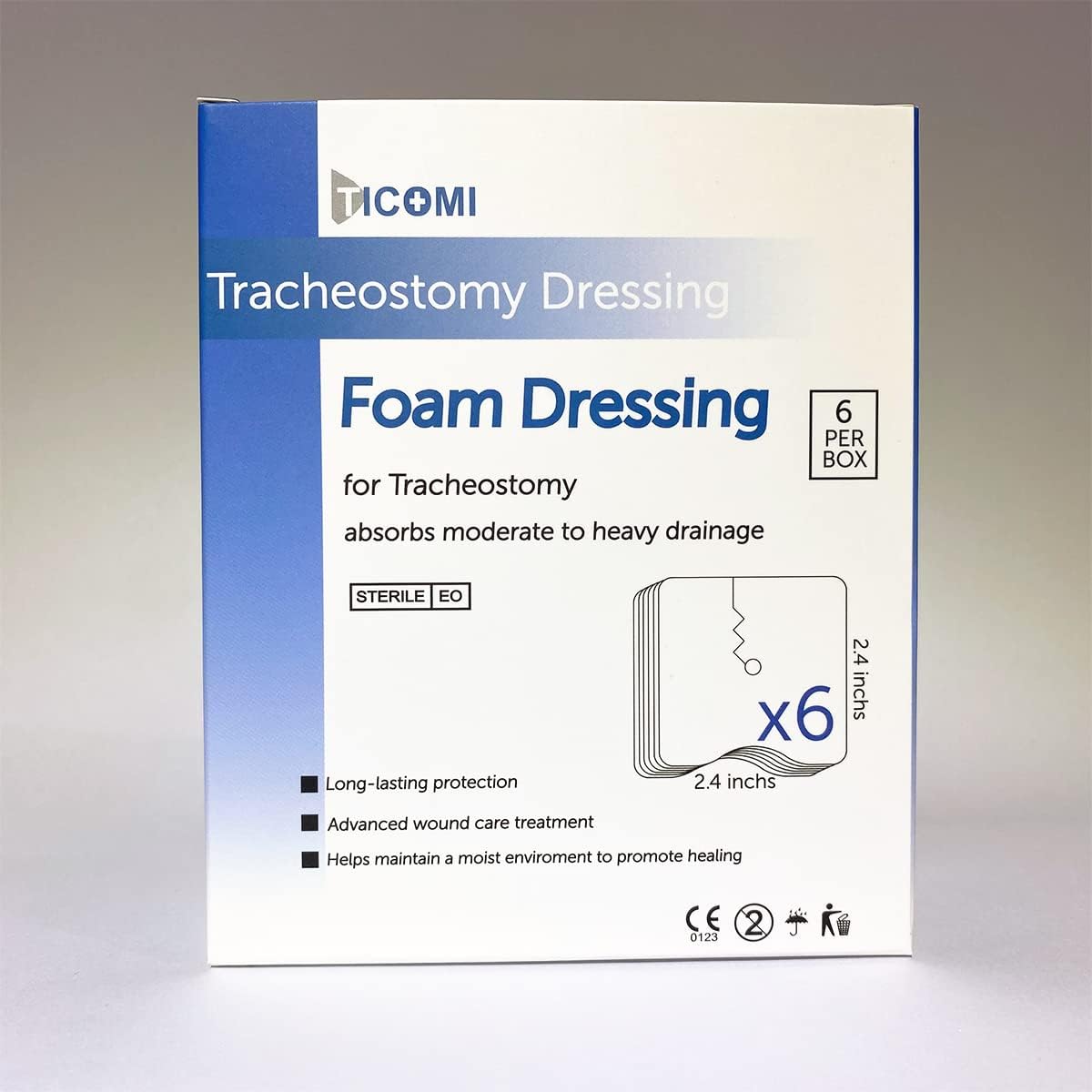 TICOMI Tracheostomy Dressing Pad ,Thicken Sponges, Trach Stoma Care , Sterile (Pack of 6)