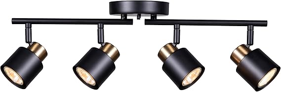 4 Light Track Lighting Kit, Matt Black Brass Finish Adjustable with Moden Flush Mount Ceiling Spotlight for Kitchen, Living Room, Home Improvement