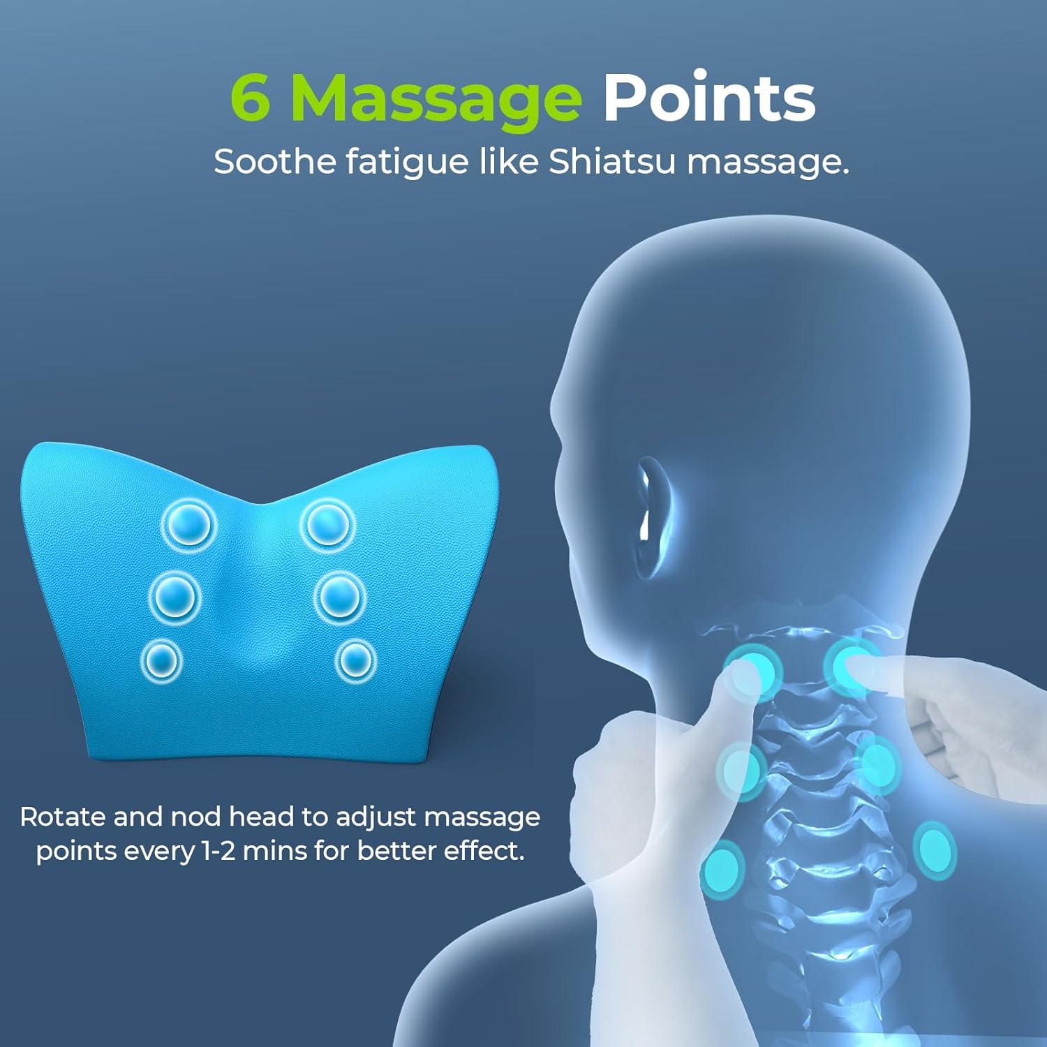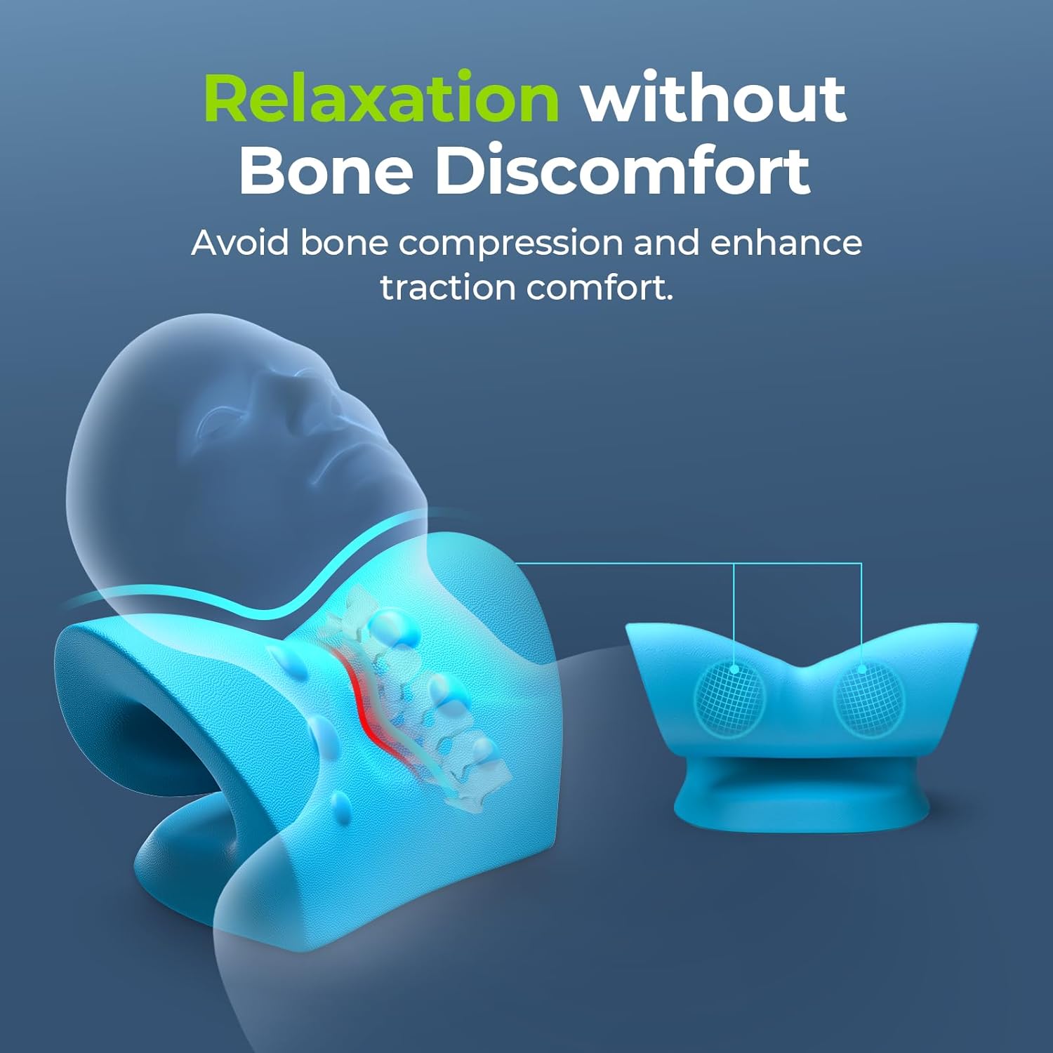 AUVON Neck Stretcher, Adaptive Cervical Traction Device for Gentle Pain Relief, Neck and Shoulder Relaxer with Cervical Groove for Hump, Spine Alignment, Muscle Tension, Headaches, TMJ Pain (Blue)