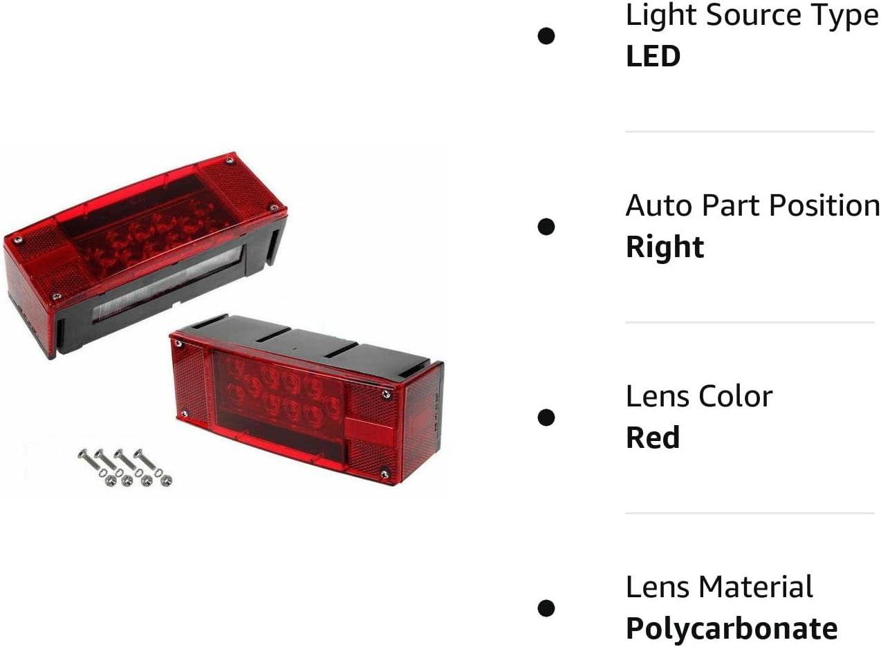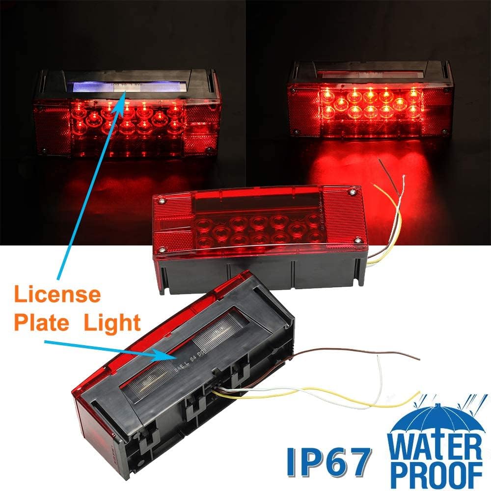 Left+Right/over 12 LED super diodes for each light/AUTO 2PCS 12V LED Submersible Low Profile Rectangular Trailer Lights, Tail Stop Turn Running Lights Kit, Sealed for Boat Trailer Truck Marine