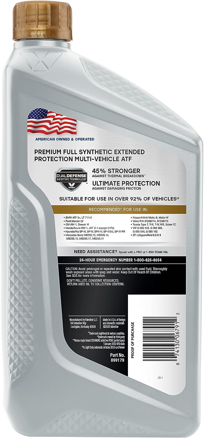 Valvoline Extended Protection Full Synthetic Automatic Transmission Fluid ATF 1 QT
