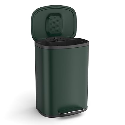 13 Gallon Stainless Steel Foot Pedal Large Trash Can with Soft Close Quiet Curved Surface Top Lid and Deodorant Storage Space, with 30 Garbage Bags for Kitchen/Home/Office Trash can and More - Green
