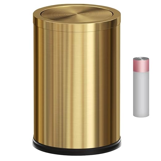 9L / 2.4 Gallon Gold Small Trash Can, Bathroom Trash Can with Lid, Modern Garbage Can for Bathroom, Bedroom, Office, Hotel, Metallic Gold (Gold Single Layer)